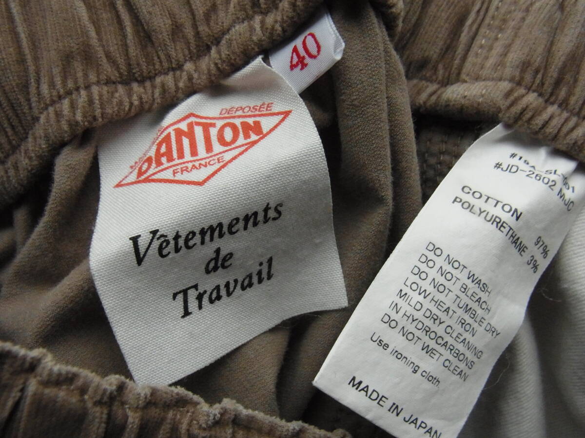 DANTON ダントン ストレッチ細畝コーデュロイ素材 ワイドテーパードシルエット イージーパンツ サイズ 40 日本製 ライトブラウン系