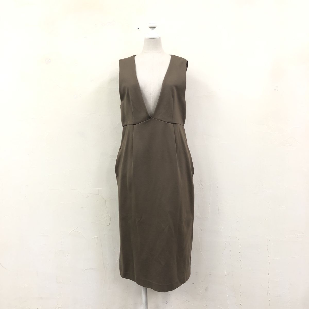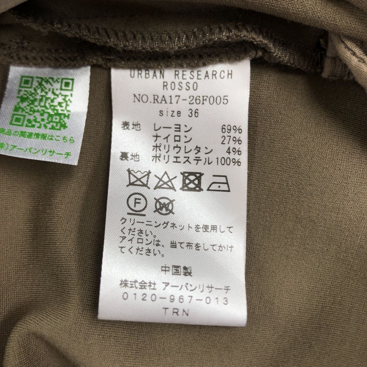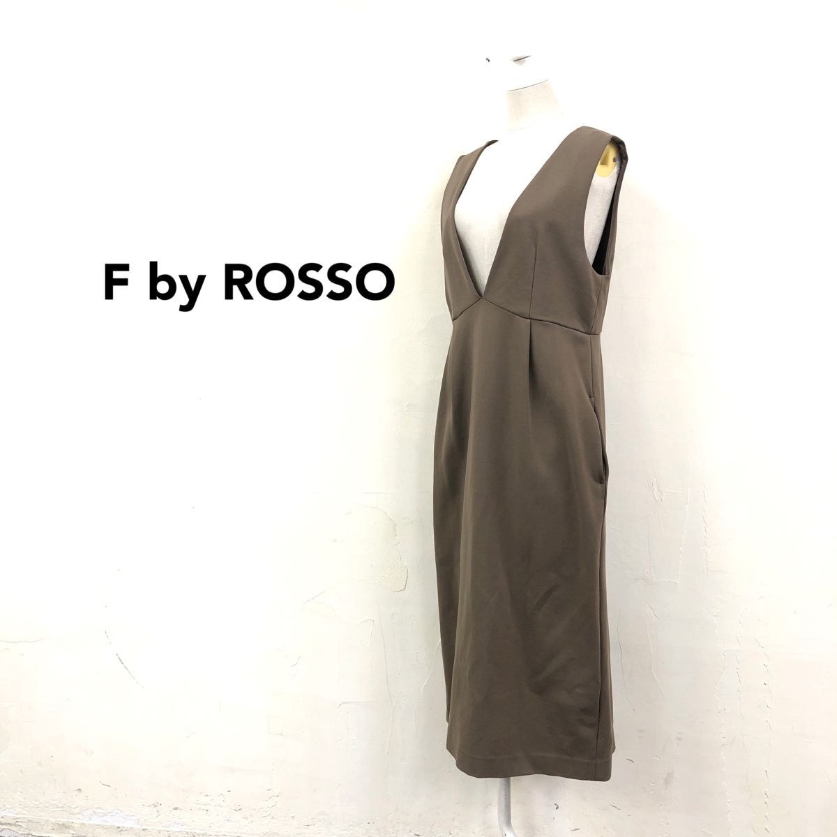 2N1580-Y◆F by ROSSO URBAN RESEARCH エフバイロッソ ジャンパースカート 膝下丈 重ね着 サイドポケット ◆size36 カーキ系 レーヨン