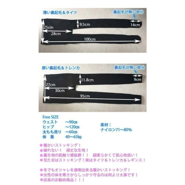 裏起毛 黒ストッキング風 ロング丈 ハイウェスト 透け感 レディース トレンカ 700デニール あったか 着圧 ブラック フリーサイズ