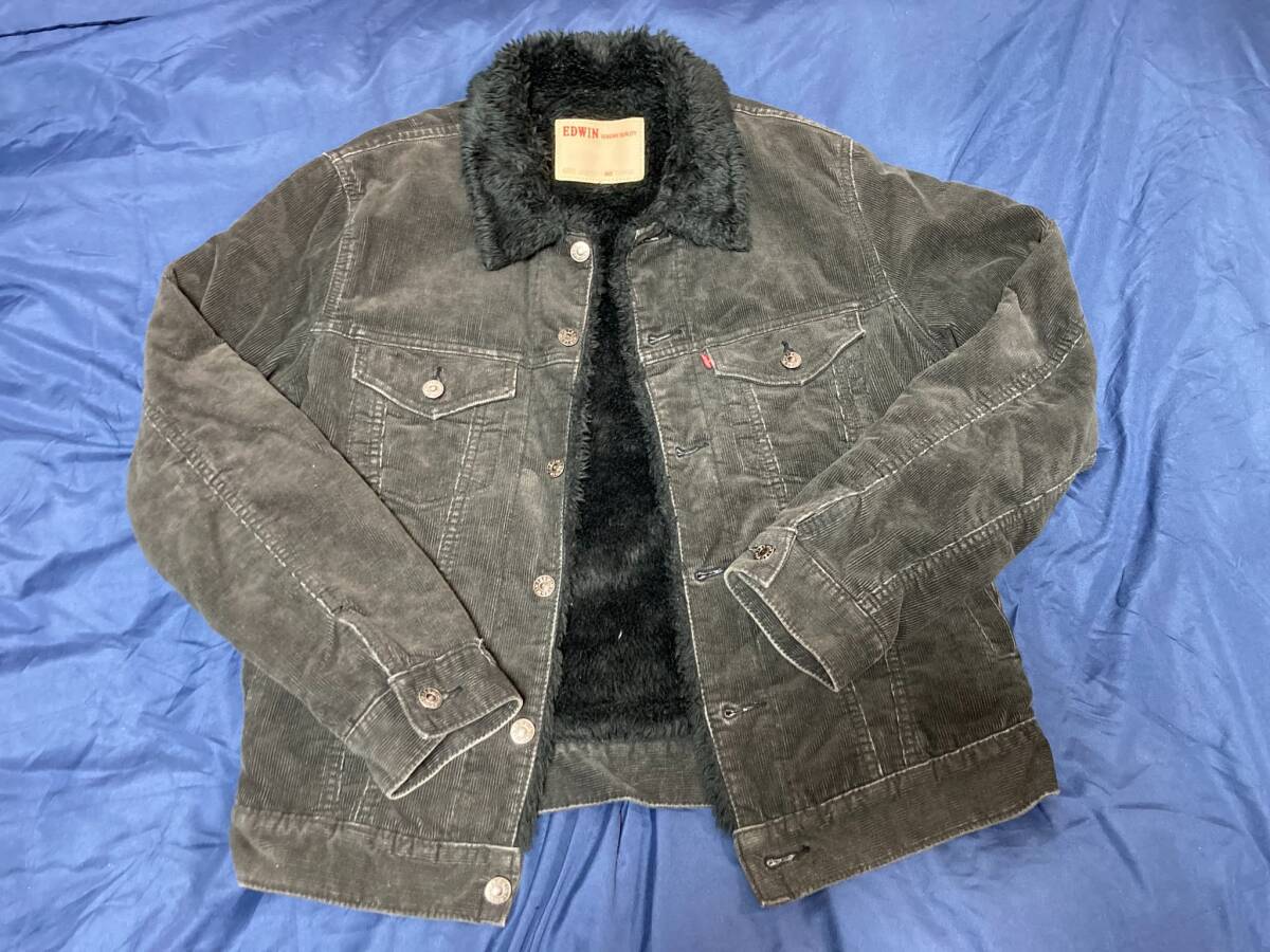 エドウィン Lサイズ ブラック EDWIN GENUINE QUALITY 503JACKET 裏ボア コーデュロイ Gジャン トラッカージャケットアメカジ ワーク