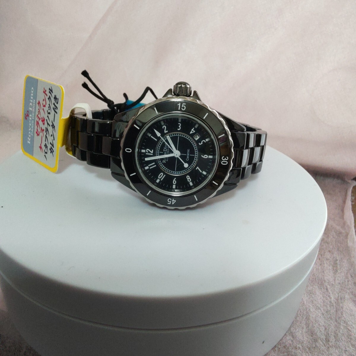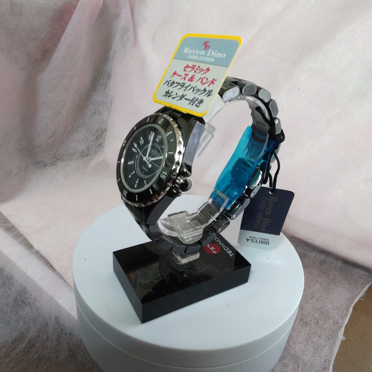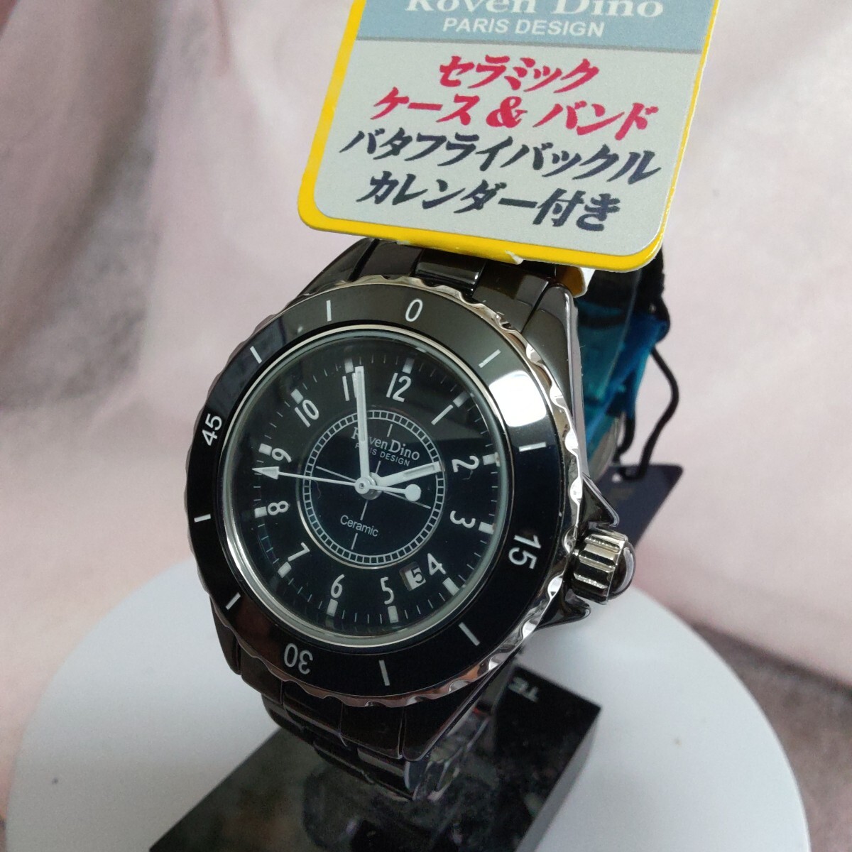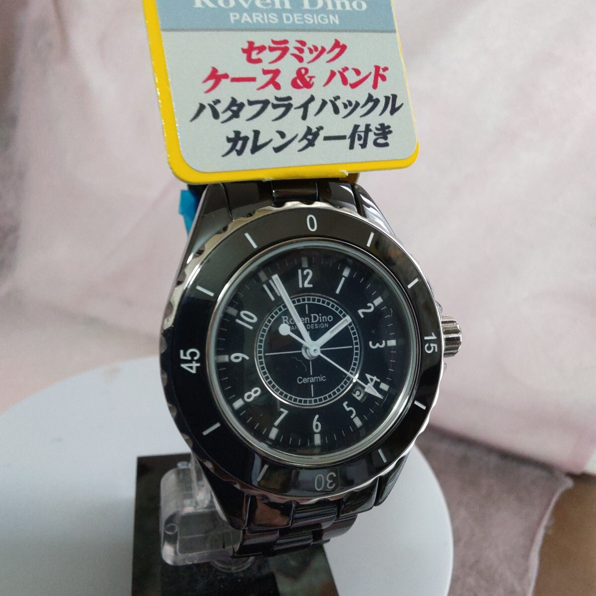 送料無料新品ロマンディーノRD3268-2  回転ベゼル オールセラミック  バタフライバックル ブラック レディース¥53000