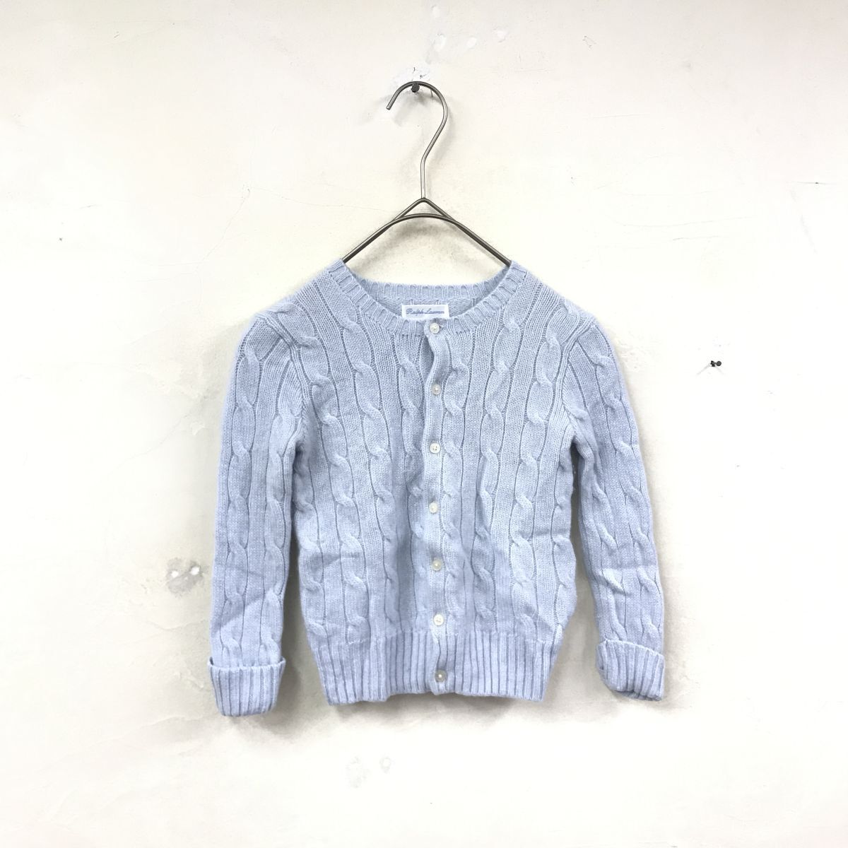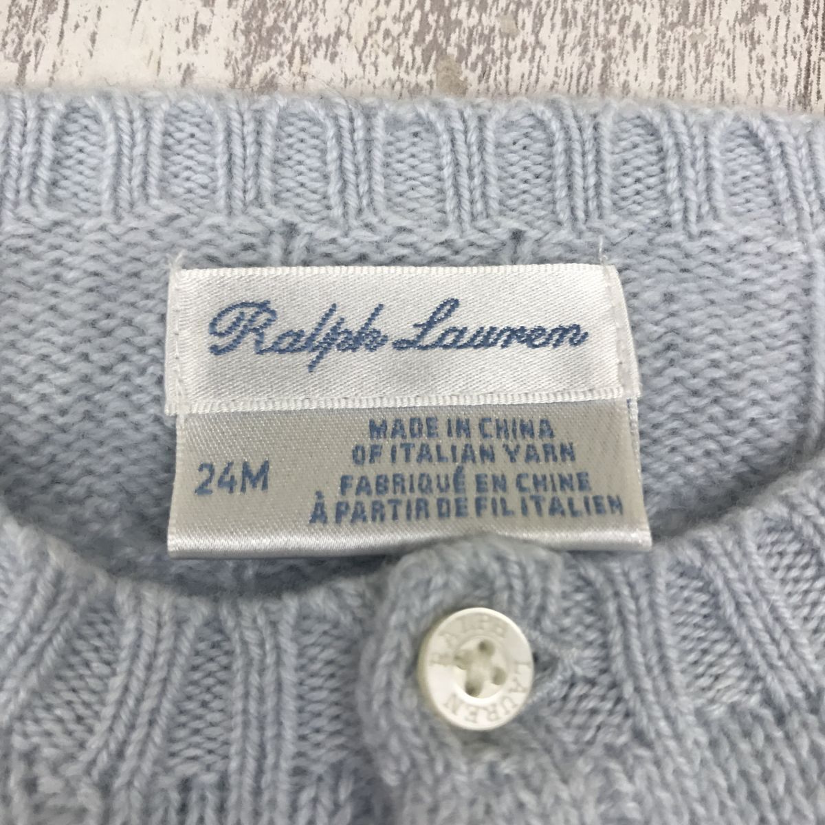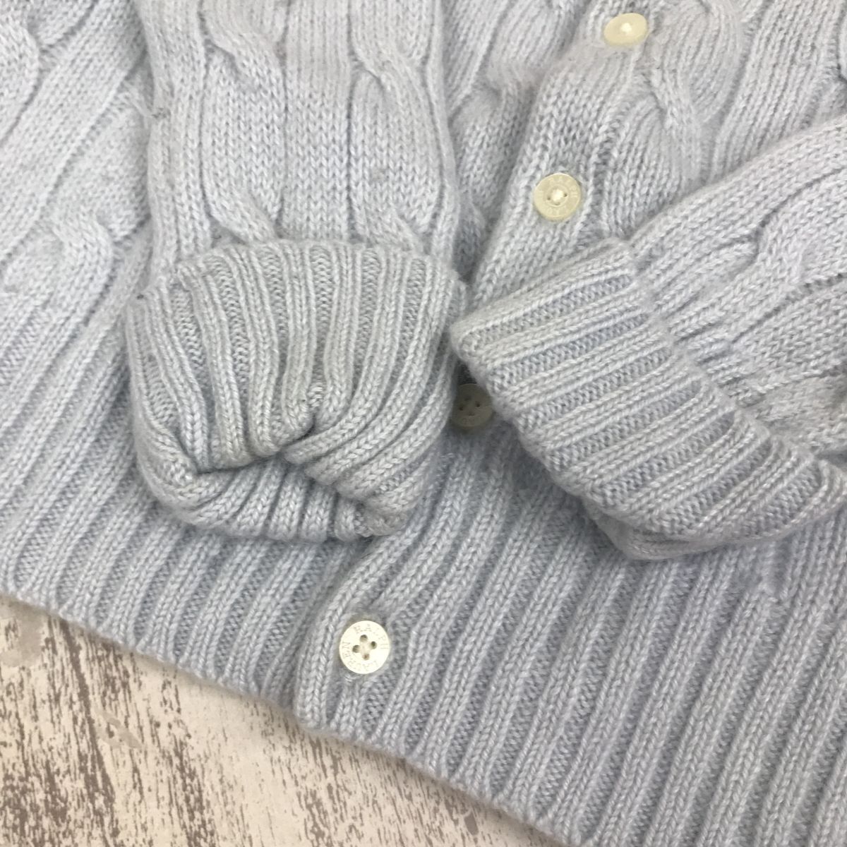 2N1614-U◆Ralph Lauren ラルフローレン キッズ ウールクルーネックカーディガン ケーブルニット セーター◆size24M 90/52 水色 ブルー