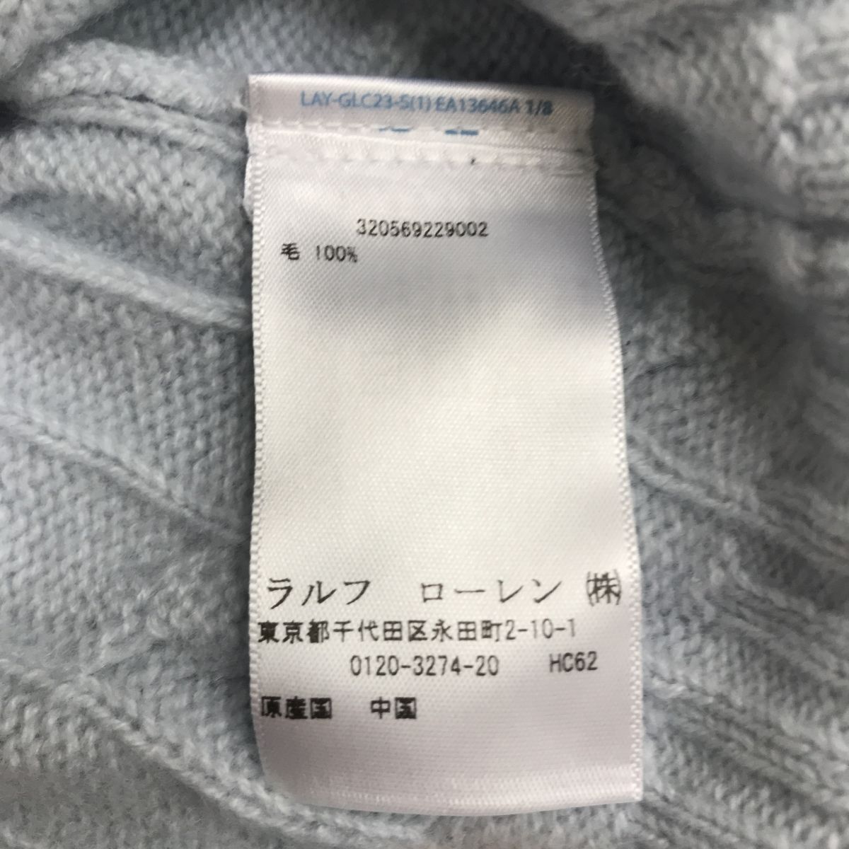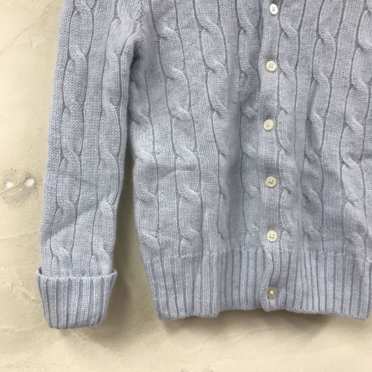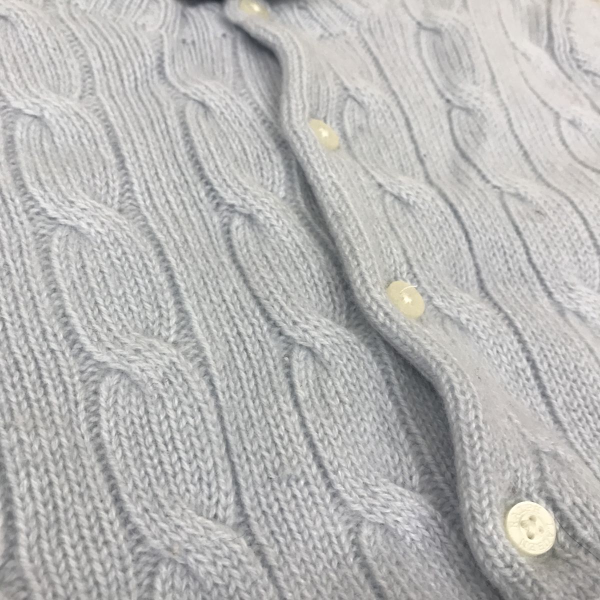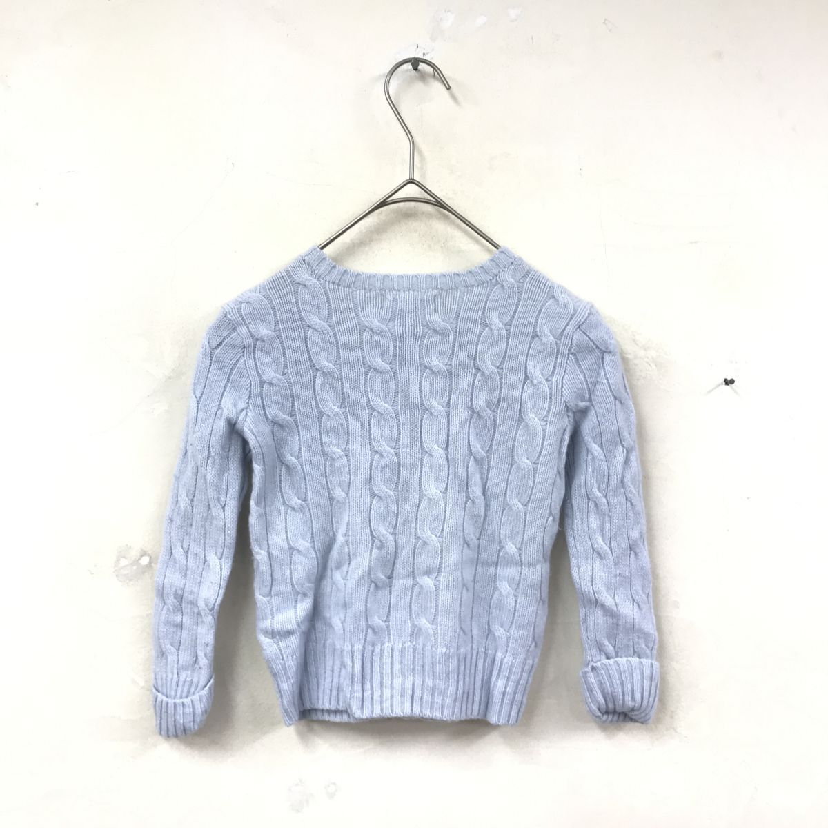 2N1614-U◆Ralph Lauren ラルフローレン キッズ ウールクルーネックカーディガン ケーブルニット セーター◆size24M 90/52 水色 ブルー