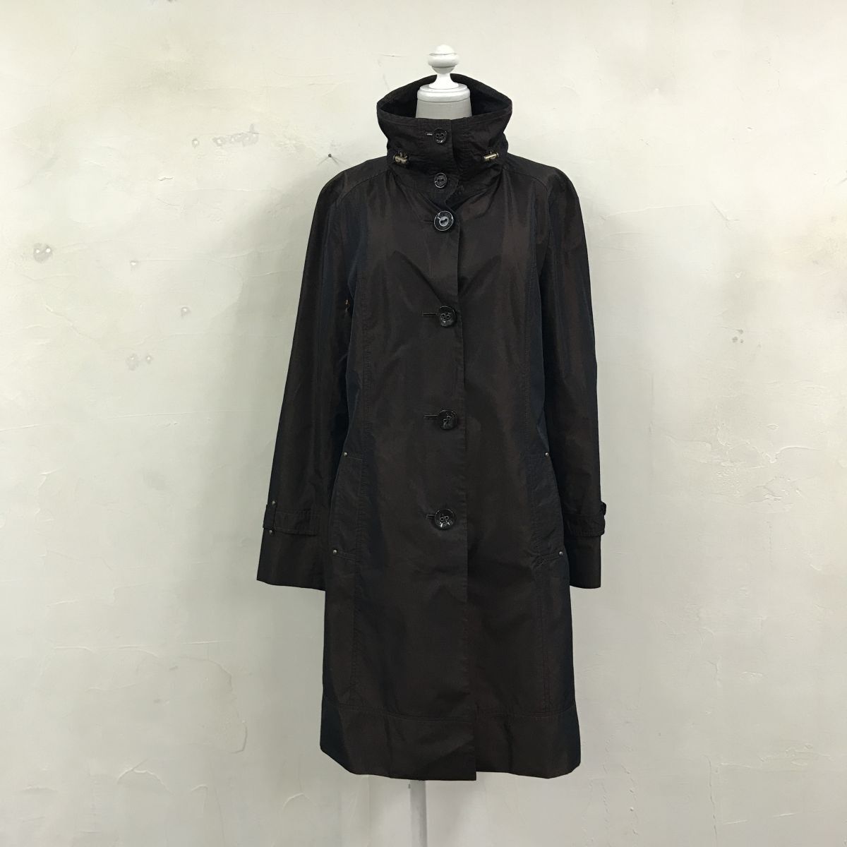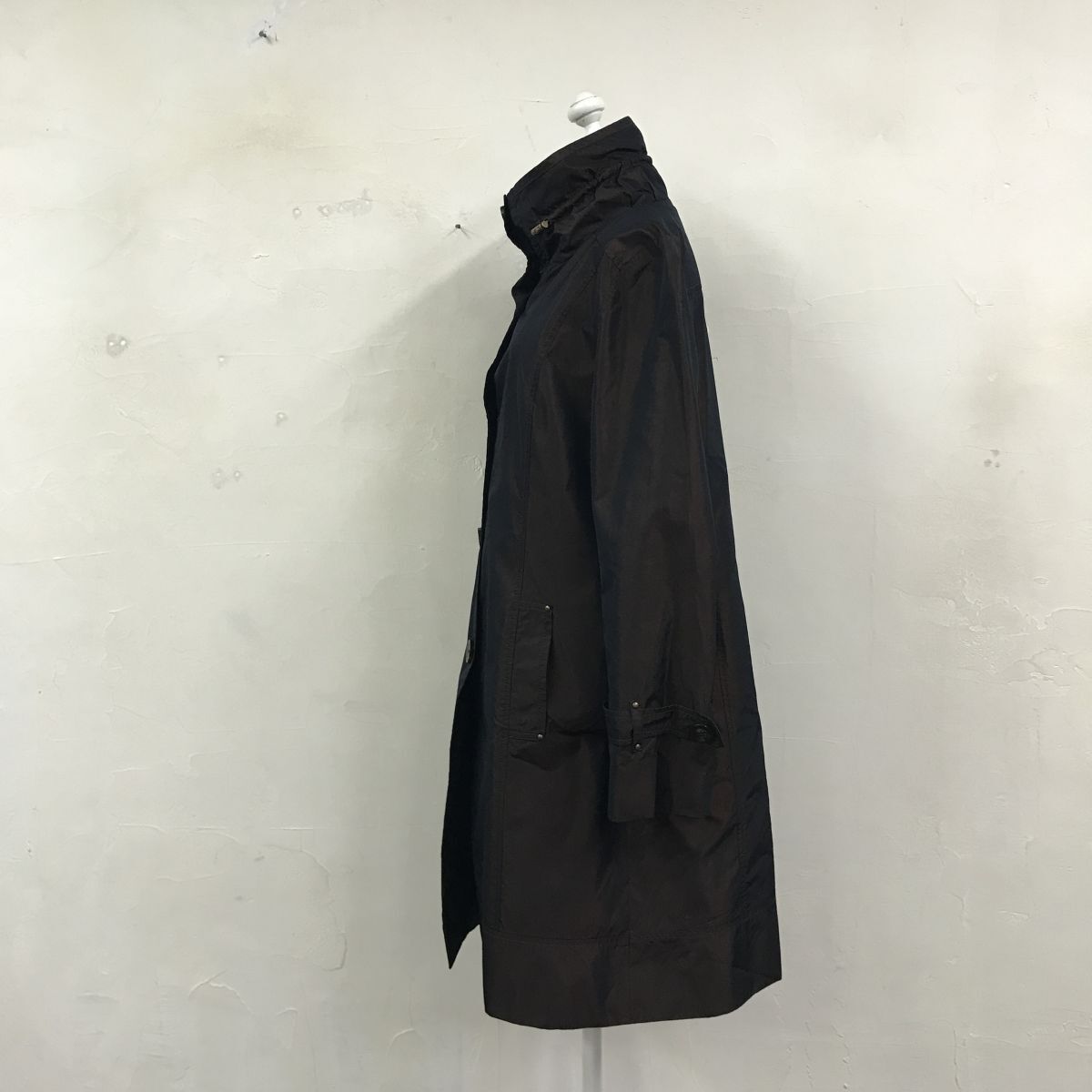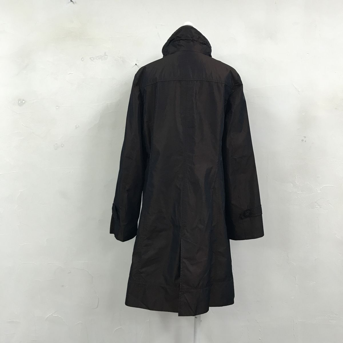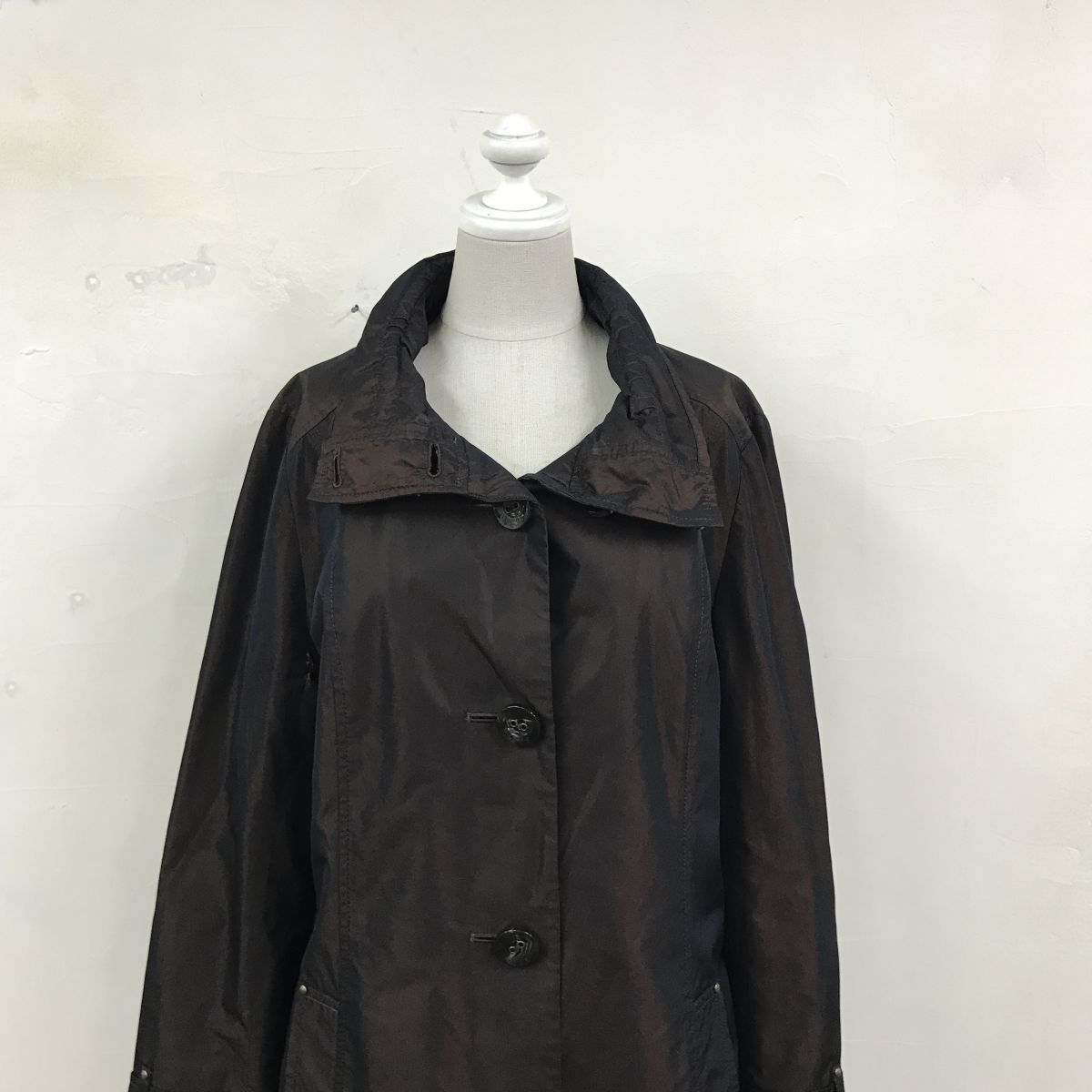 2N1136-G◆ SCAPA スキャパ ミドルライトコート ハイネック ロゴボタン スリット スリム 偏光 ◆ size40 ブラウン ポリエステル シルク