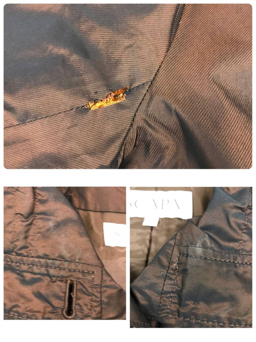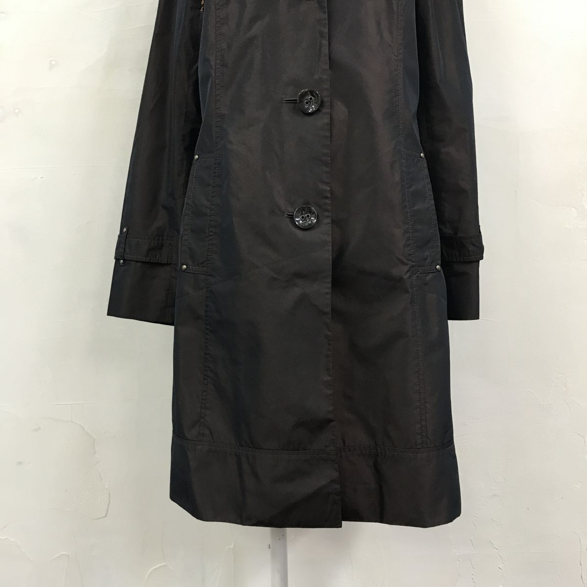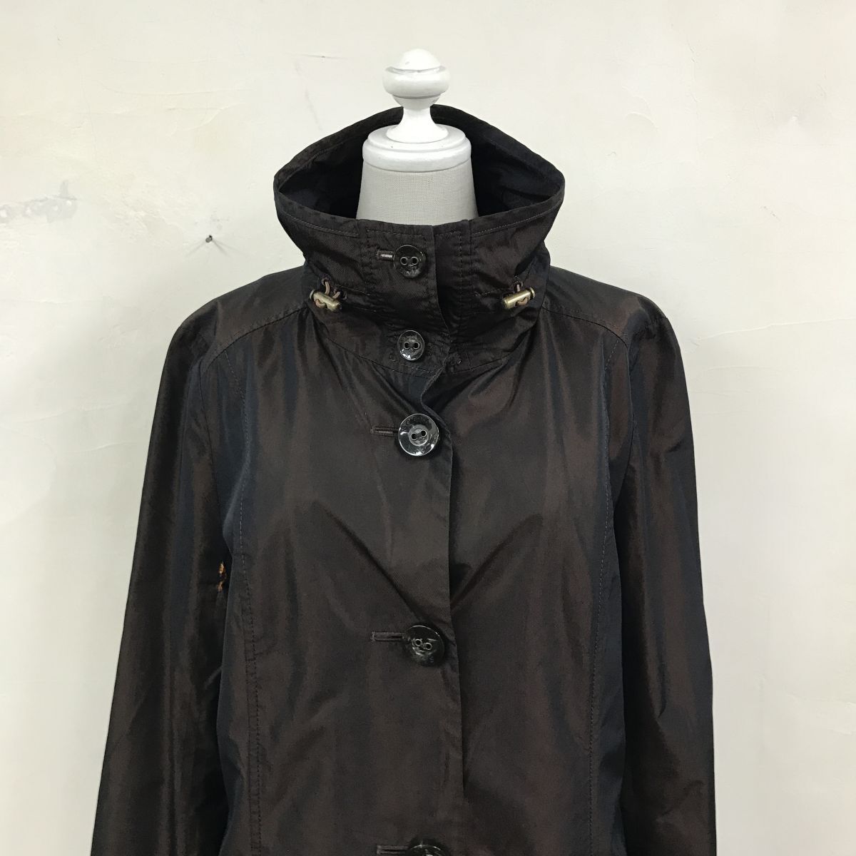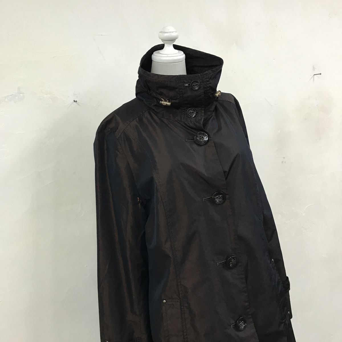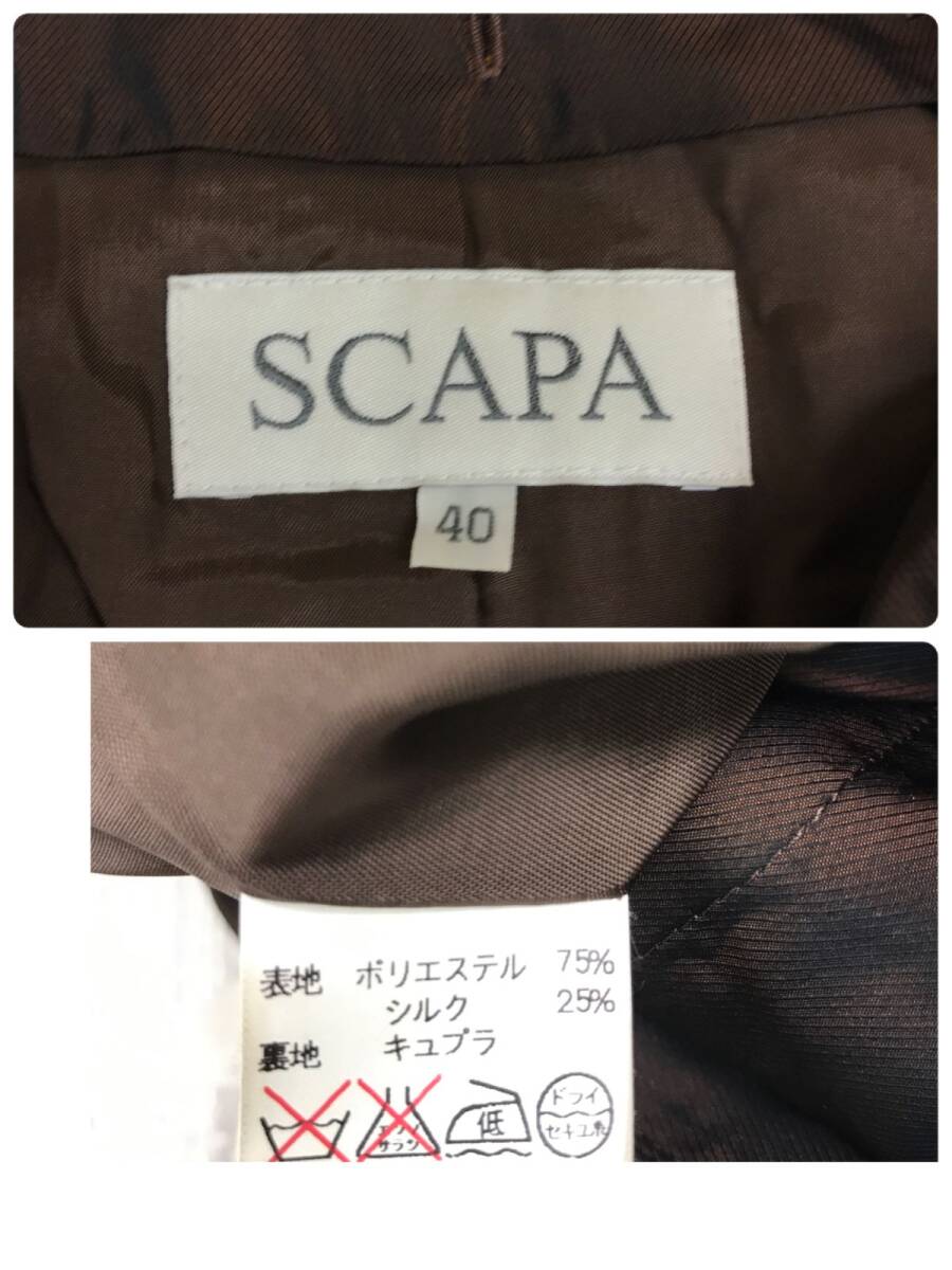 2N1136-G◆ SCAPA スキャパ ミドルライトコート ハイネック ロゴボタン スリット スリム 偏光 ◆ size40 ブラウン ポリエステル シルク