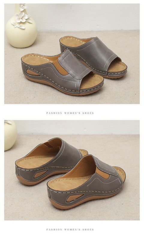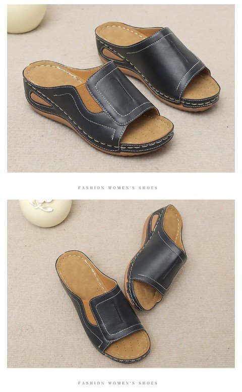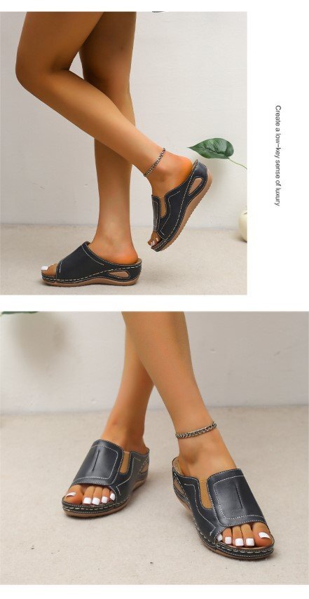 ・ゆったりした履き心地の幅広ウェッジソールサンダル。
