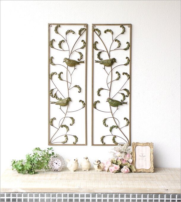 | 壁面を飾るアイアンの壁飾りは お部屋の雰囲気をオシャレにしてくれ 手軽に模様替えができる魔法のアイテム アイアンのフレームいっぱいに 小鳥が飛び交う風景は 絵画を思わせるようなカラーの壁飾りで アシンメトリーの組み合わせの2枚セットです 伸びやかな枝に小鳥が止まり カワイイさえずりが聞こえてきそうです 商品名 : アイアンの壁飾り バード2枚セット 商品番号 : spc1810 全体サイズ(cm) : 1枚につき)幅24×奥行1.5×高さ74.5 材質 : アイアン 重量 : 600g 生産国 : 中国 ※取り付け用ネジは付属していません ※小さな擦りキズや気泡などはご容赦ください ※塗装ムラや錆風のペイントにてレトロな風合いを表現した商品です |
