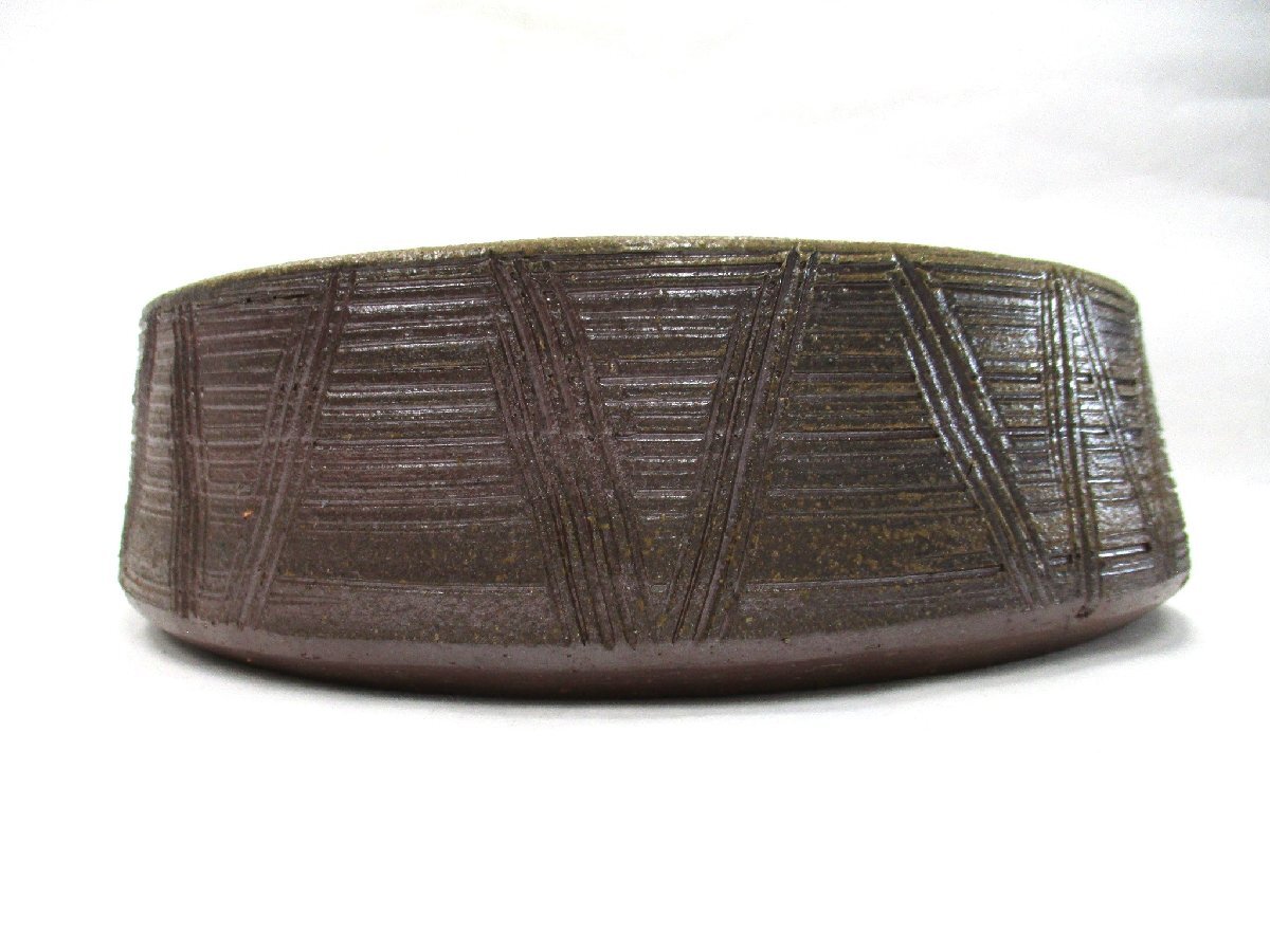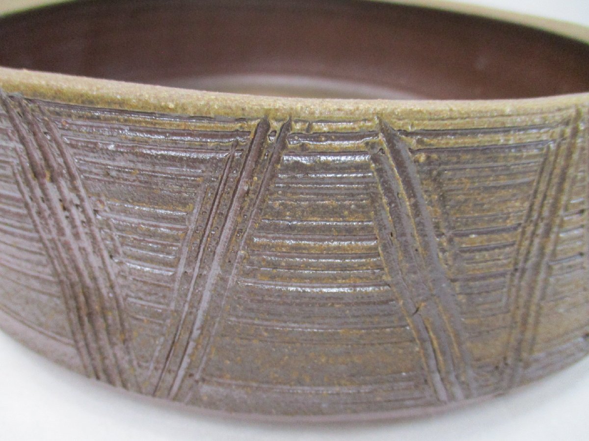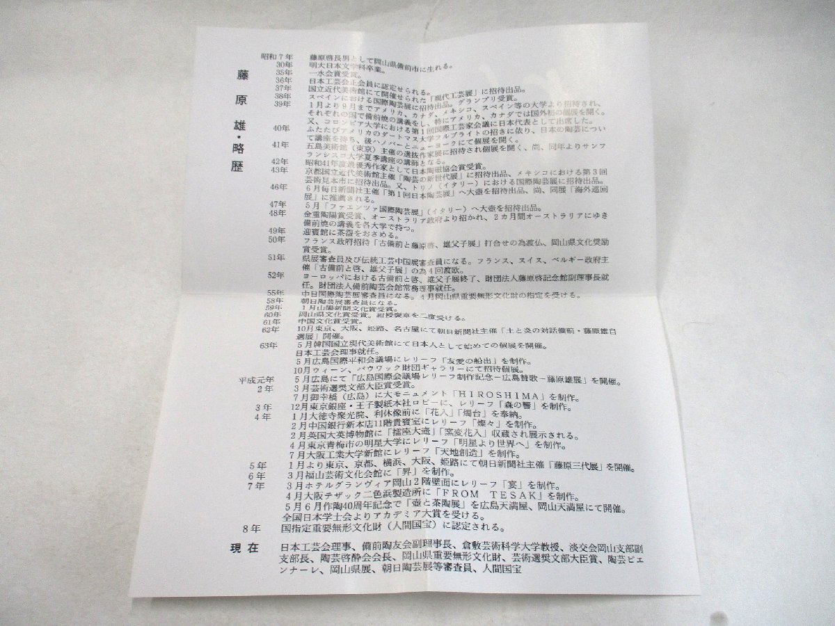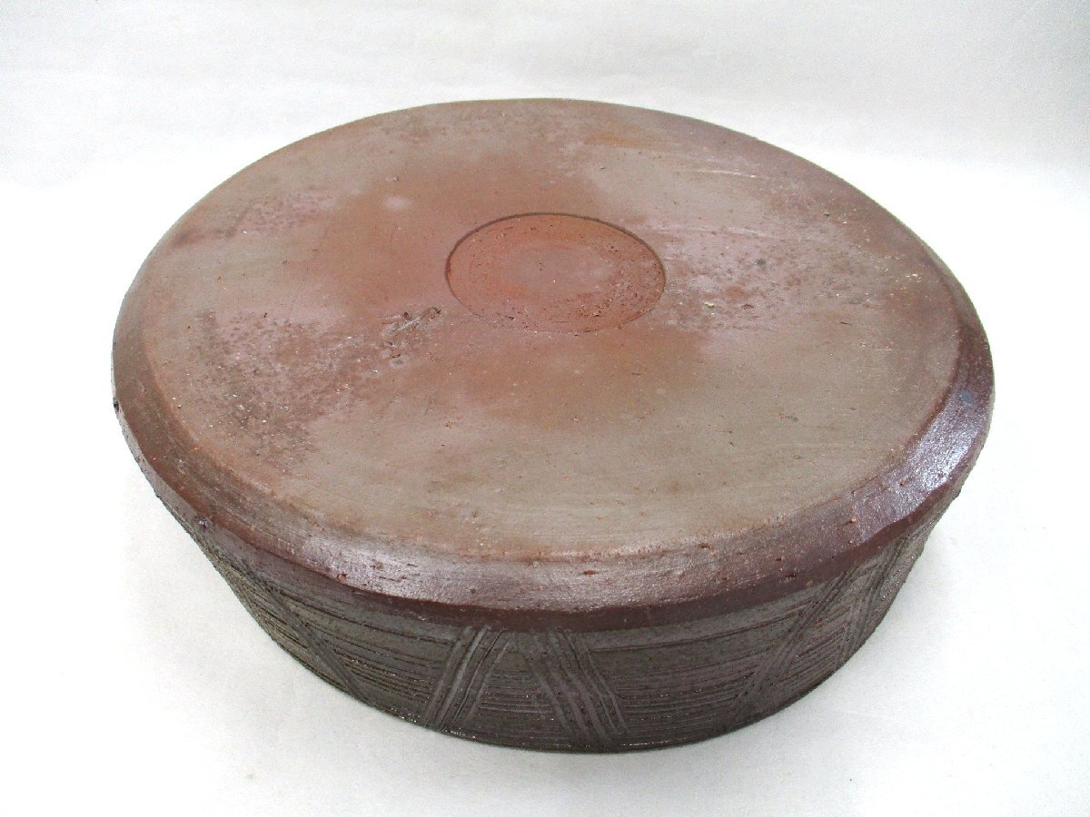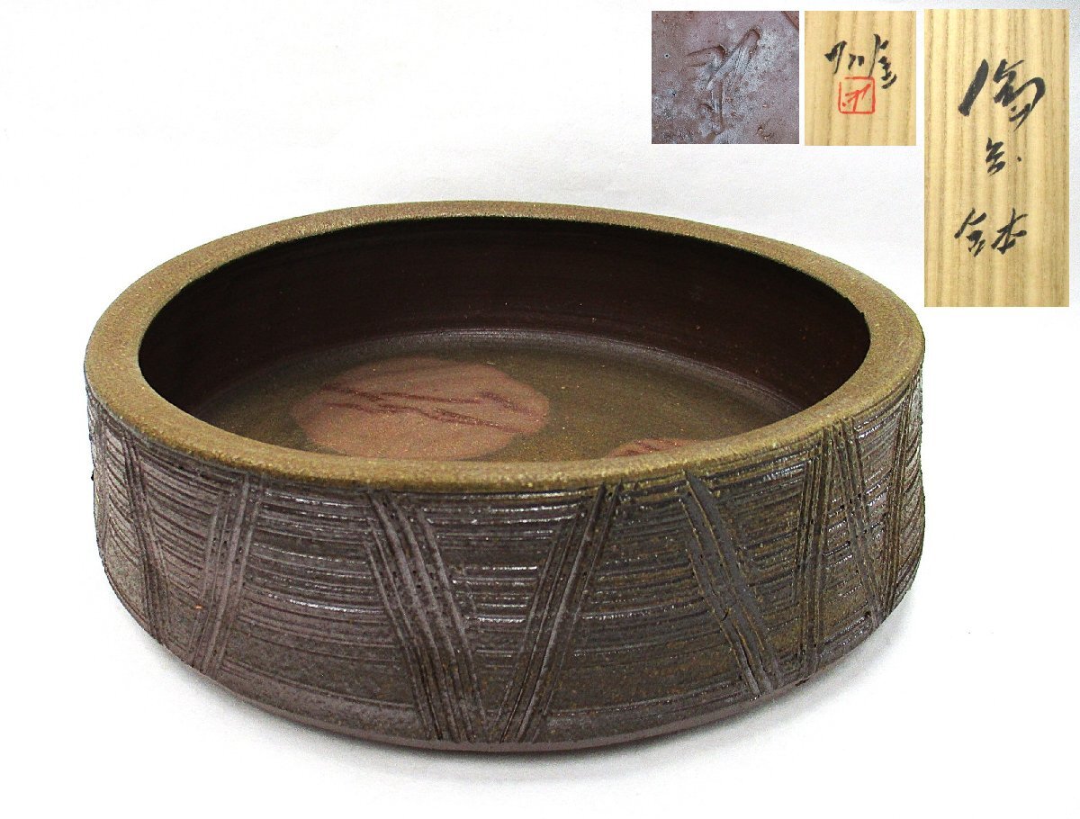 ★☆ 真作保証【 人間国宝 藤原雄作 「備前 鉢」共箱 共布 略歴付 直径245.5㎝ 】岡山県出身 父;藤原啓 ☆★
