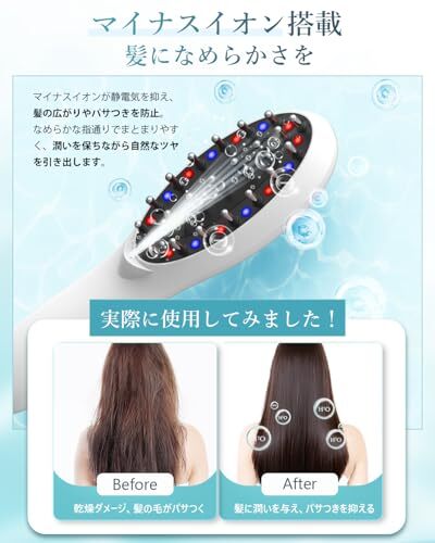 【静電気ゼロ、マイナスイオンで髪を守る】髪に優しいマイナスイオンが静電気を抑え、乾燥した髪に潤いを与えて、パサつきを防ぎます。髪の広がりを抑え、滑らかな指通りを実現。毎日の使用で、髪にしっかりと潤いを与え、しっとりまとまる美しい髪へと導きます。