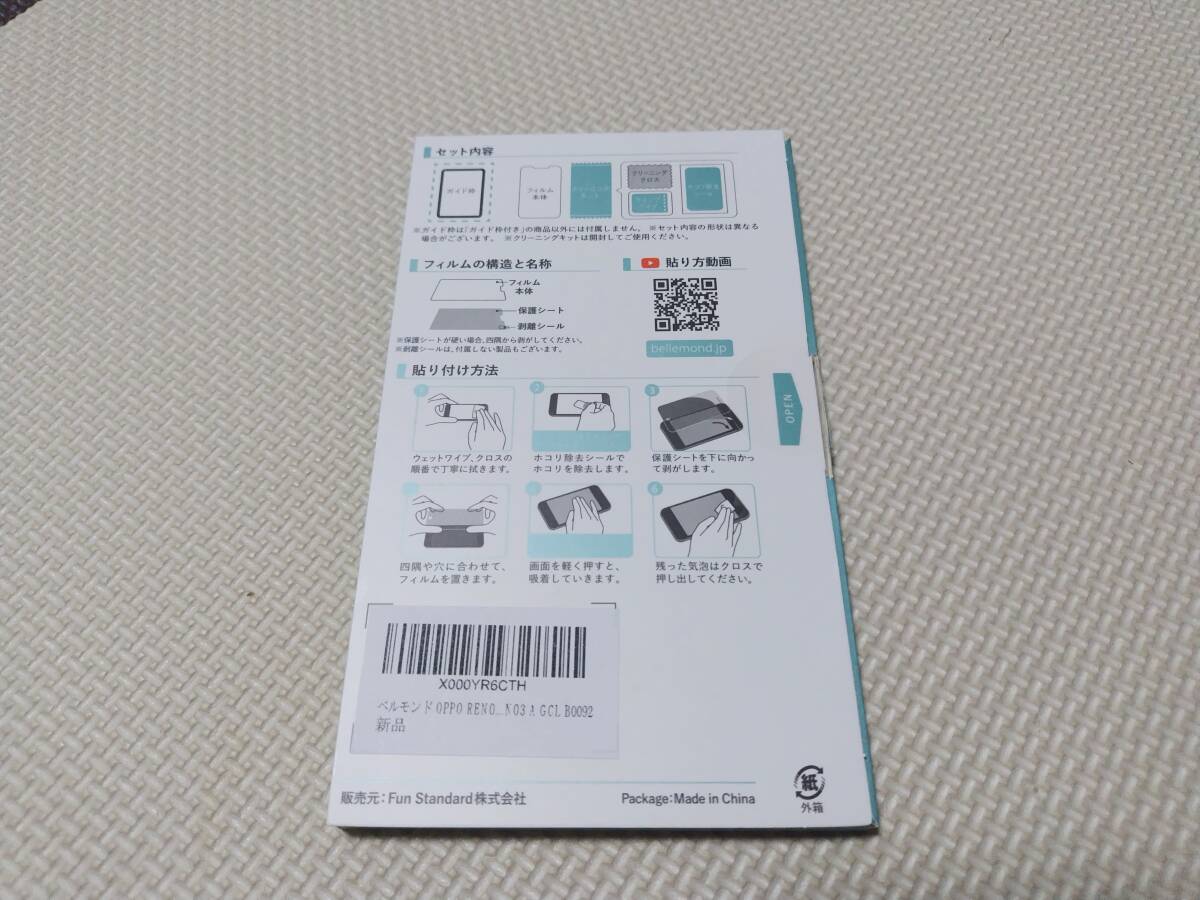 【未使用】BELLEMOND OPPO Reno3 A ガラスフィルム