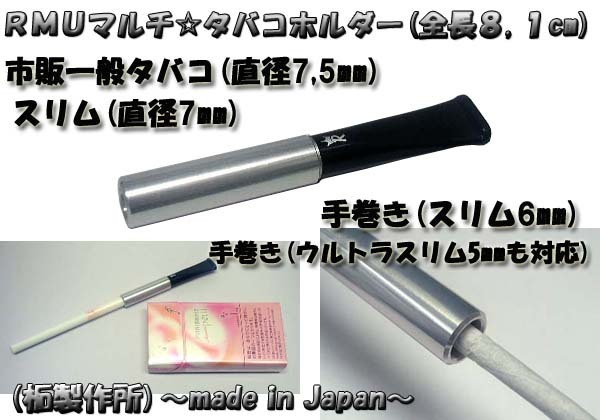 送料180円~新品 柘製作所(日本製)マルチタバコシガレットホルダーRMU(直径50,60,70,75mm対応)シルバー 手巻き,スリムetc 全長(8,1cm)