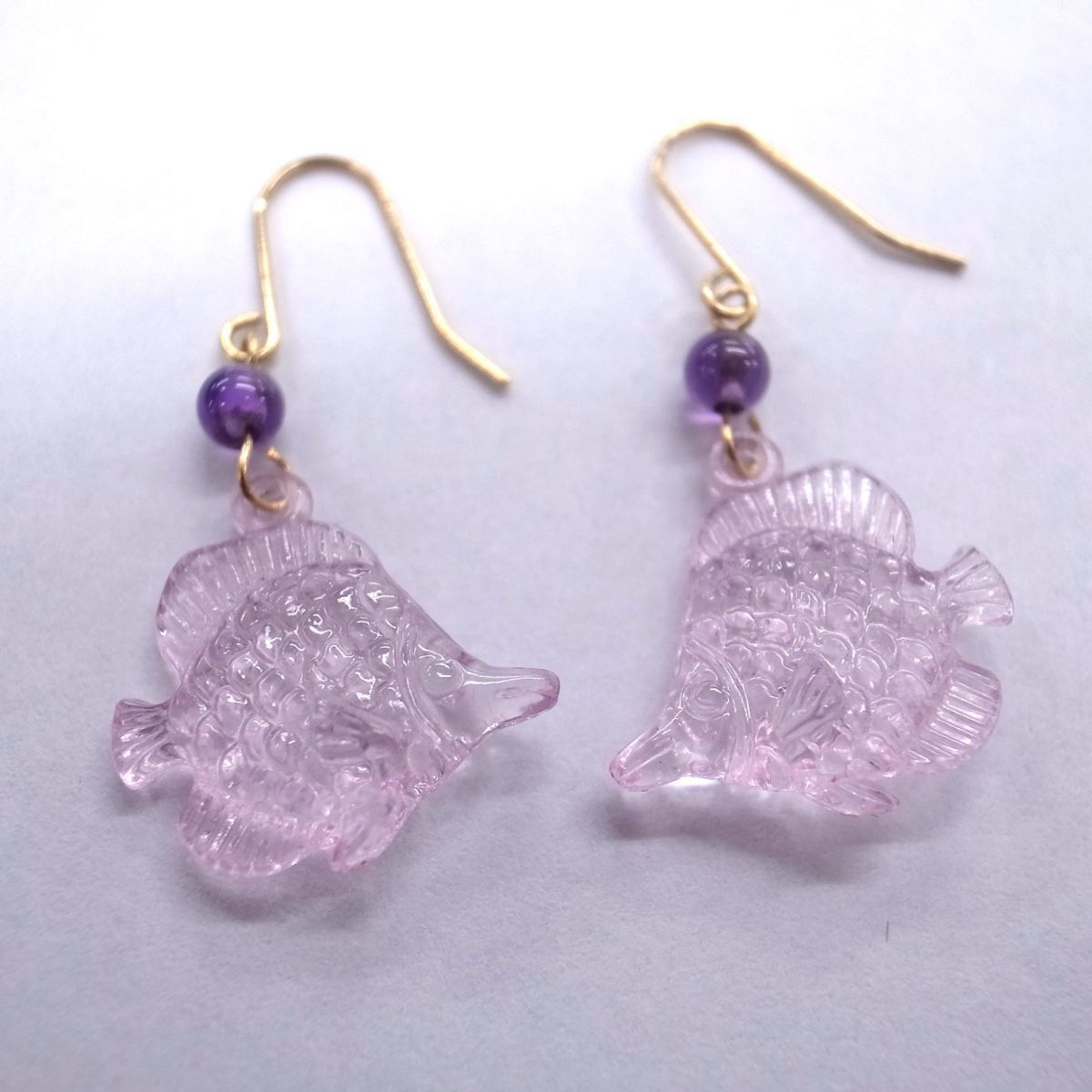 | 商品 | K18 ピアス パープル系 重量(約)0.9g 魚モチーフ フックピアス 全長:(約)3.0cm ※採寸誤差はご容赦ください。 |
