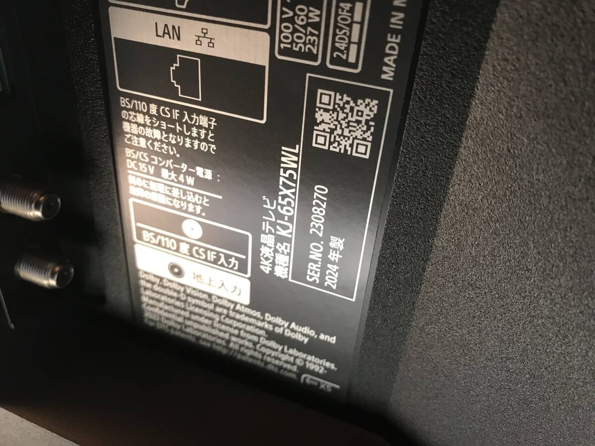 ② SONY BRAVIA KJ-65X75WL 65型 4K 液晶テレビ 2024年製 ブラビア Google TV