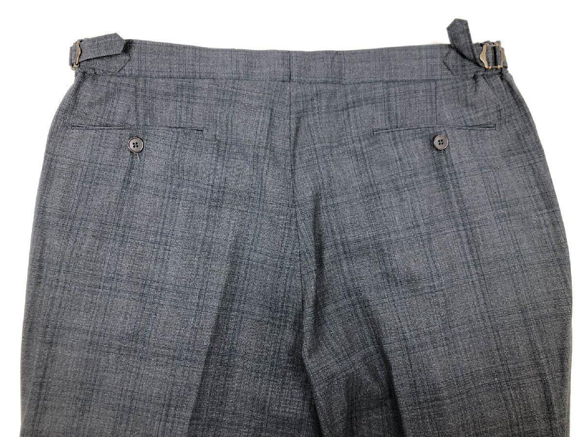 ・ウエスト実寸約88~92センチ(0センチ出し、0センチ詰めが可能です。)、股上約27センチ、渡り幅約34センチ、股下約76センチ、総丈約104センチ、裾幅約19センチ(裾はダブル仕上げダブル幅4センチ、最大8センチ出しができます。)