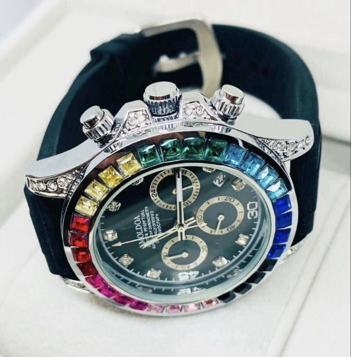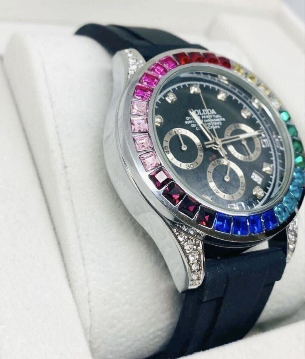 こちらクロノ作動時通常秒針の部分が動きますがまるで機械式の様にコクコクコクと動きますのでお値段以上の機能となっております
