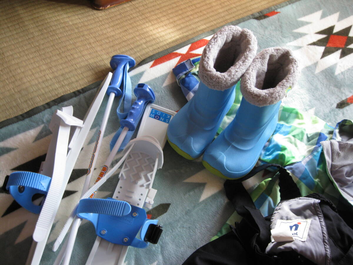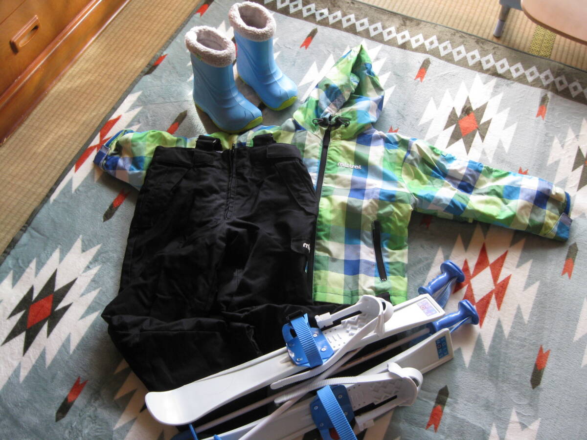 子供用品スノボー4点セット ウエア上肩幅38・幅42・丈50・下W34 ・股下51㎝・ブーツ17~18cm。スキーセット。