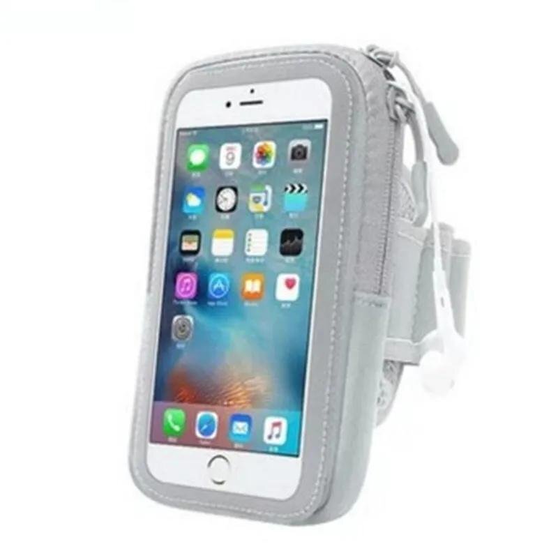 【シルバー】特大 アームバンド ランニング ジョギング 大容量 ランニングポーチ ウォーキング iPhone Android ポーチ B94