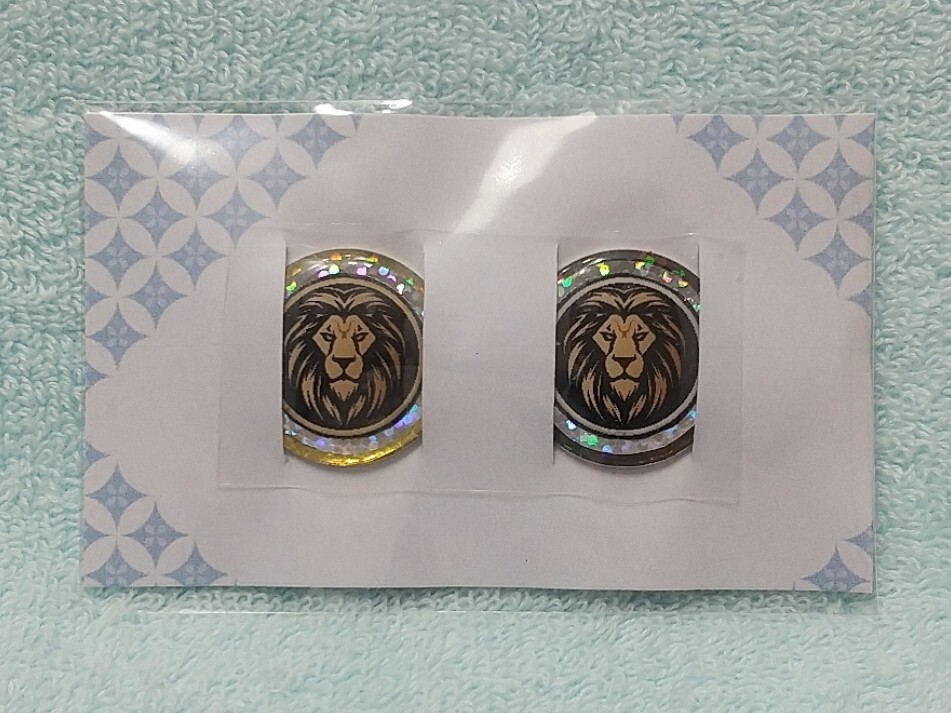 ホログラム仕様で光を反射していろんな色に輝きます。