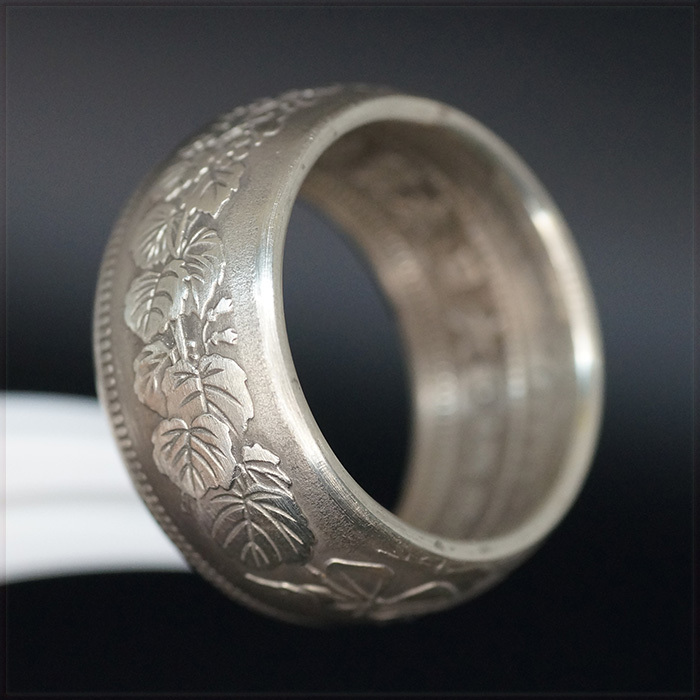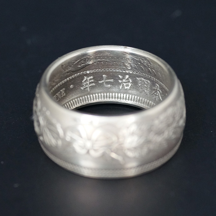 大日本明治七年 420 GRAINS TRADE DOLLAR 900 FINE アメリカ トレードダラー 貿易銀 銀貨 コイン デザイン 13mm リング です。