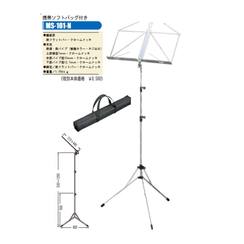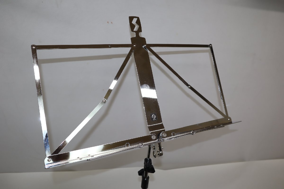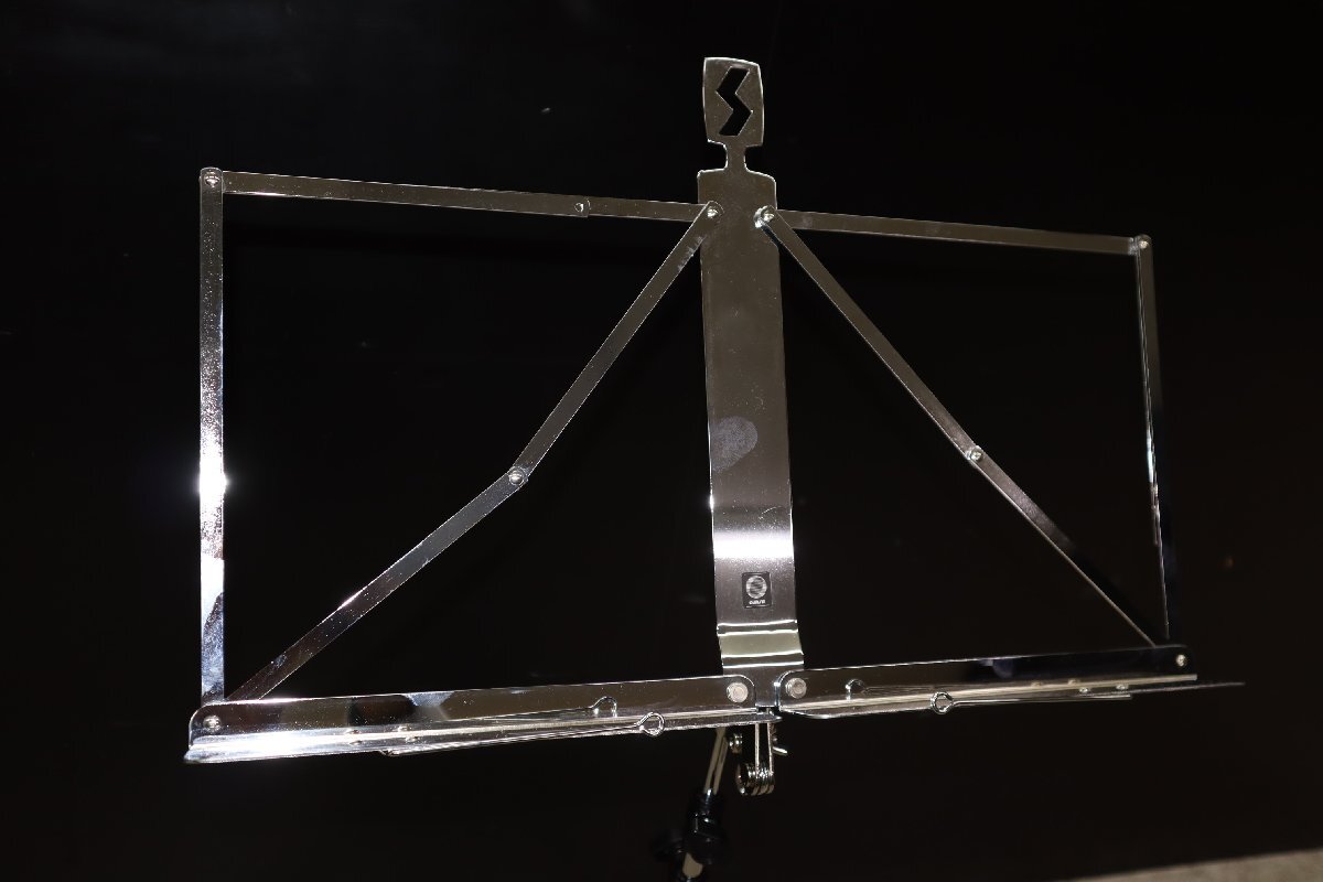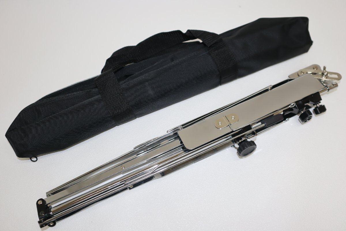 OHASHIの譜面台。折り畳み式。スティール製。ソフトケース付き。クロームメッキ。