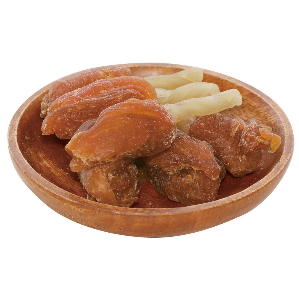 鶏ささみを玄米糀に漬け込んで、旨味を引き出して濃縮し、柔らかく仕上げました。噛みごたえのある小さなガムを、一手間かけた極上の鶏ささみで1つずつ手包みしました。着色料・保存料・発色剤・酸化防止剤無添加。