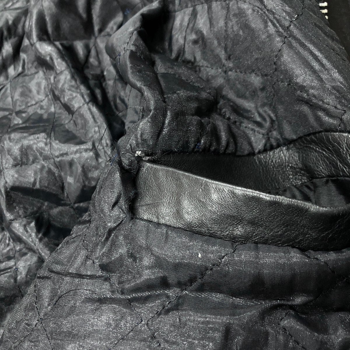 中古品です。使用感があります。各部に擦れ、袖リブに擦れ、裾リブに小さなホツレ、内ポケットに破れがあります。