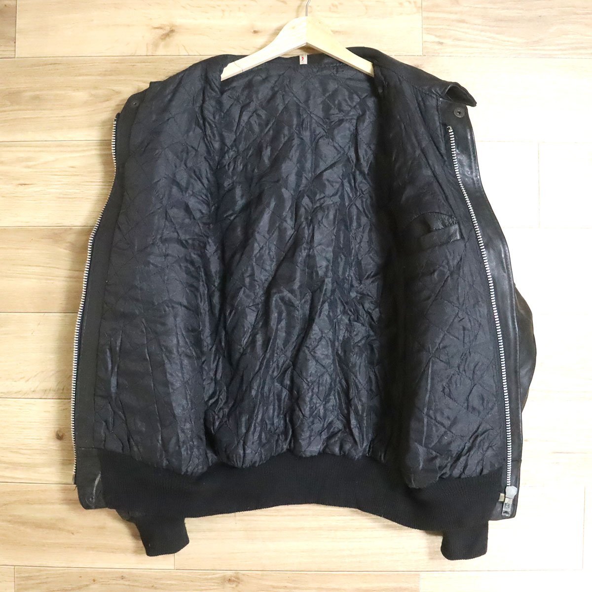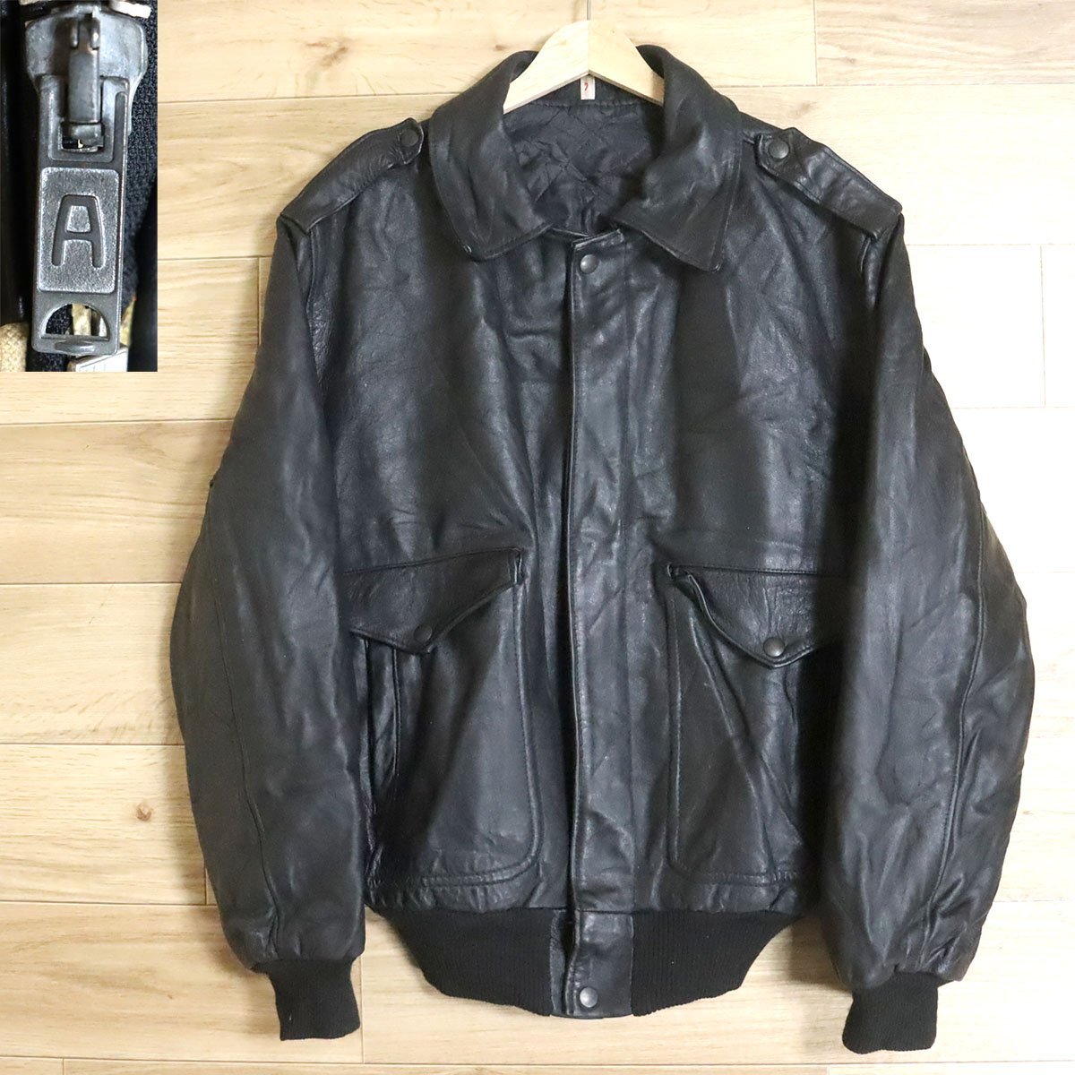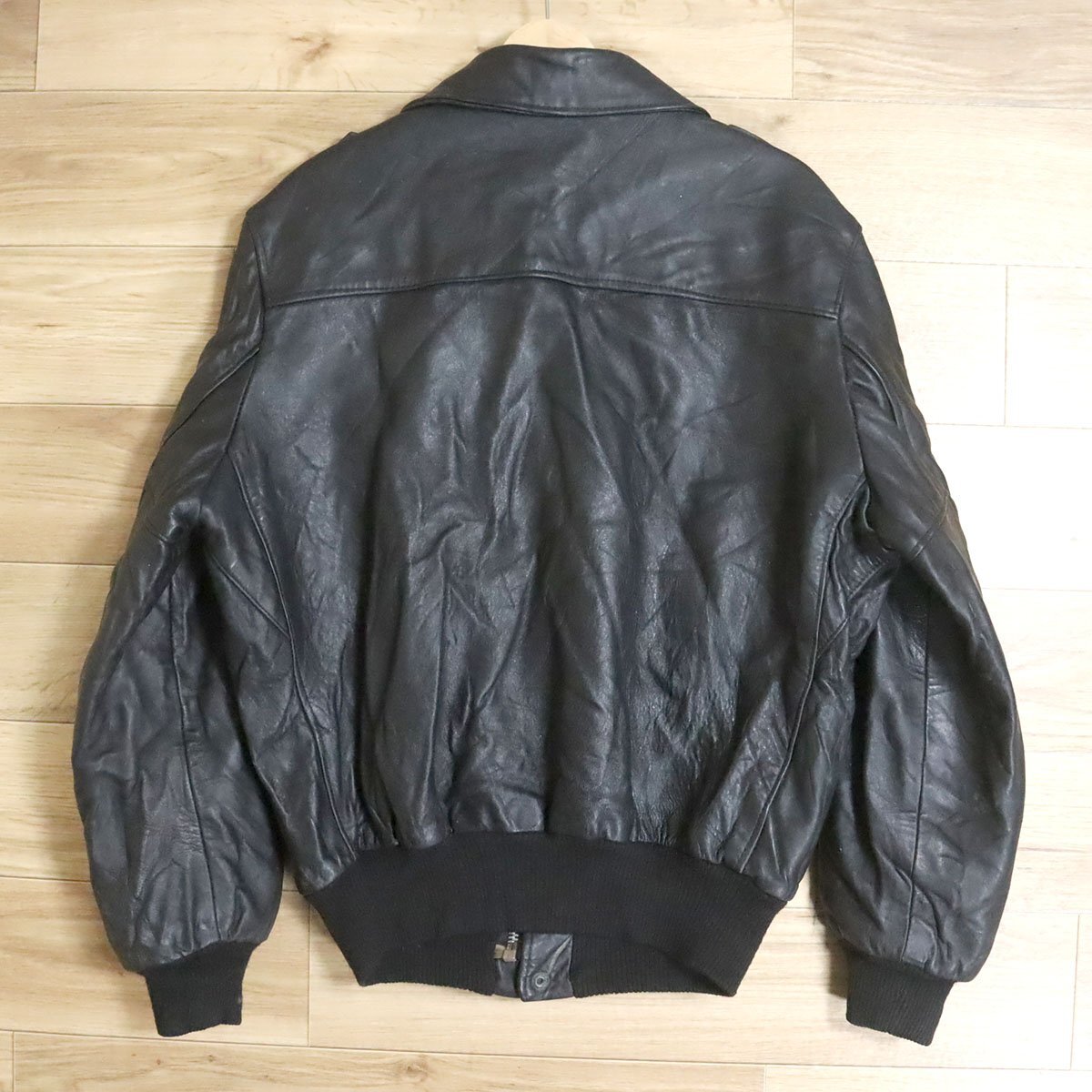 M2R/D10.7-2 ユーロ古着 レザーフライトジャケット A-2 本革 レザーブルゾン 革ジャン 皮ジャン アウター メンズ ブラック