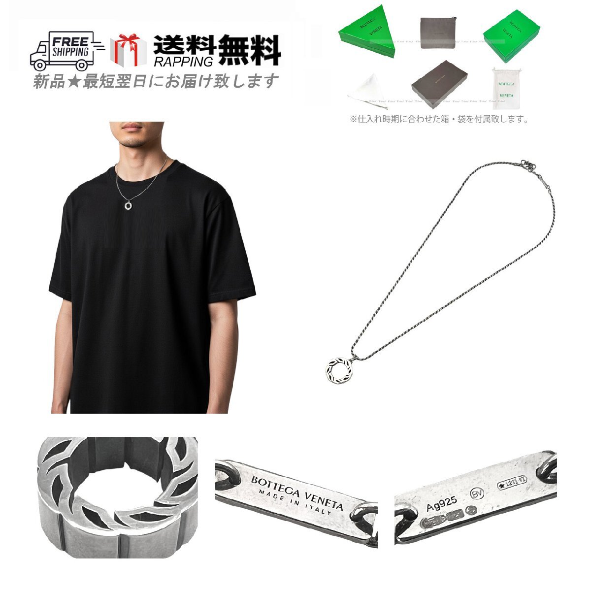 L949.. BOTTEGA VENETA ボッテガヴェネタ ネックレス ペンダント チェーン RING Ag925 メンズ イタリア製 ★ 8117 シルバー