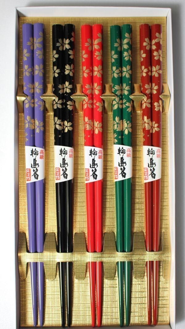 輪島塗 わじま箸 【 桜吹雪 蒔絵】 5膳セット 天然木 化粧箱