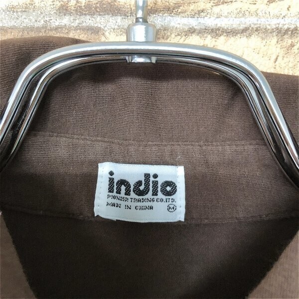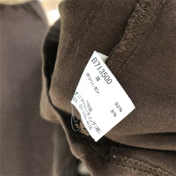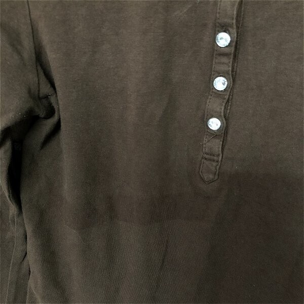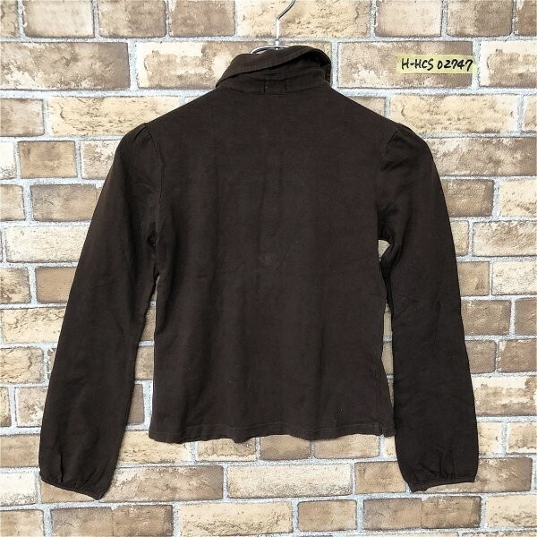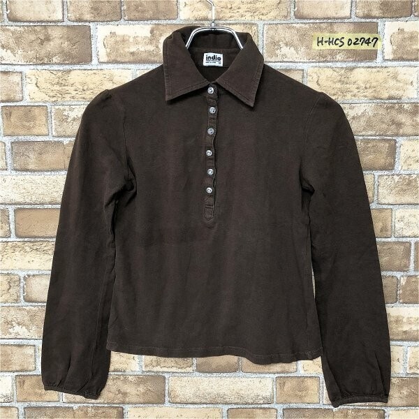 indio インディオ レディース ビジューボタン ショート丈 長袖ポロシャツ M 茶 ブラウン 綿 コットン ベーシック