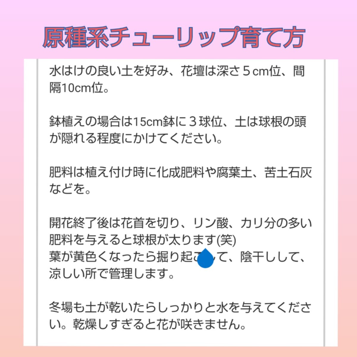 一般的な原種系チューリップと同じ育て方ですので、ネットで検索してみてください。