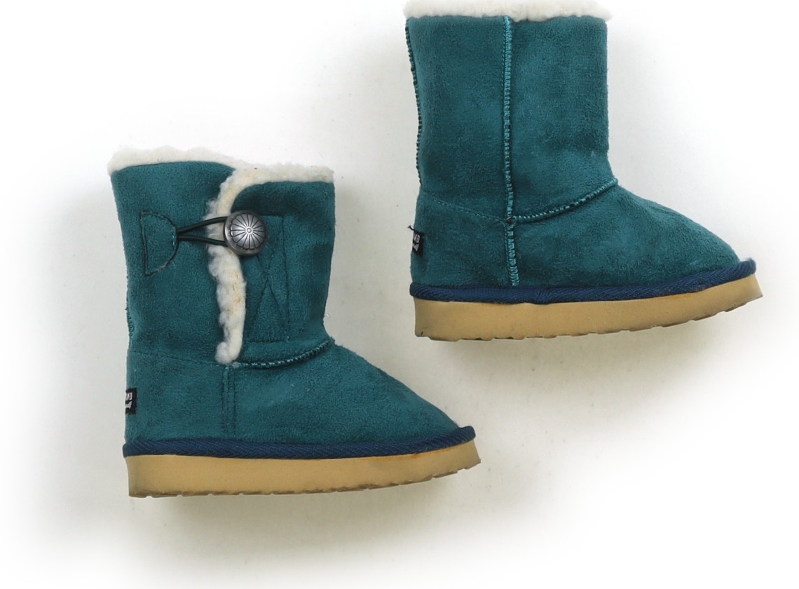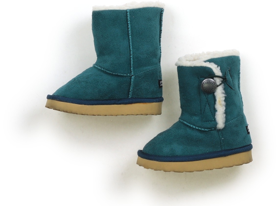 実際のサイズ表記は13cm。ムートン。ネイティブアメリカンなボタンのデザイン。左靴外側に黄色いシミがあります。機能性に問題はなさそうです。まだお使いいただけそうです。