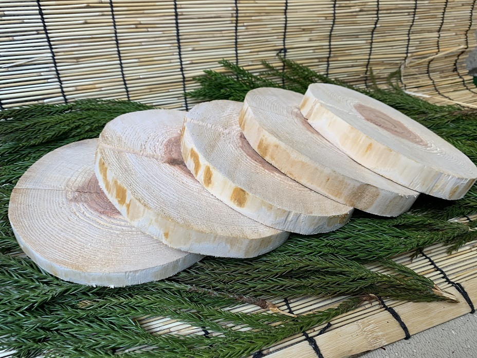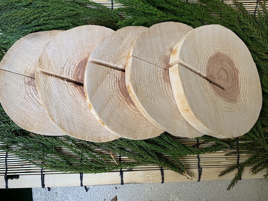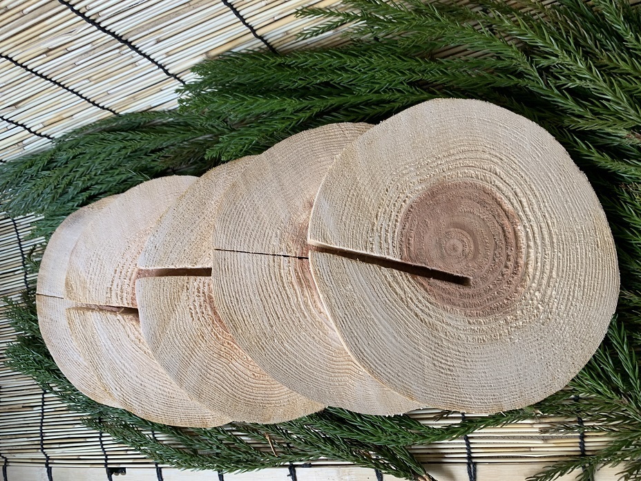 ・チェーンソーでの輪切りで厚さは誤差があります。