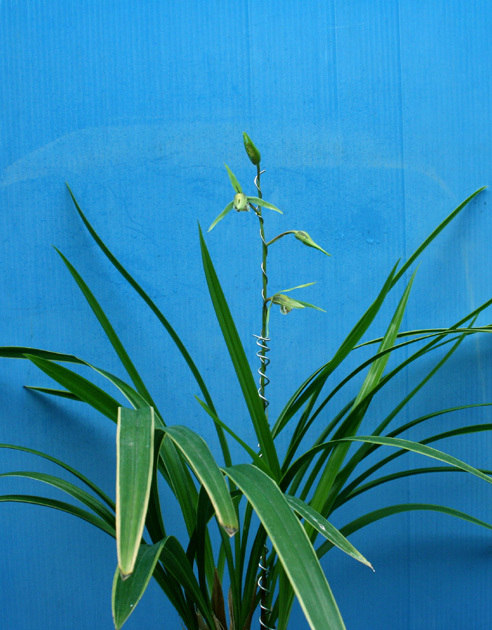 | 寒蘭の特徴: | 葉の特徴は半垂葉で硬く、厚葉、肉厚、濃緑葉覆輪で青花です。 | |||||||||