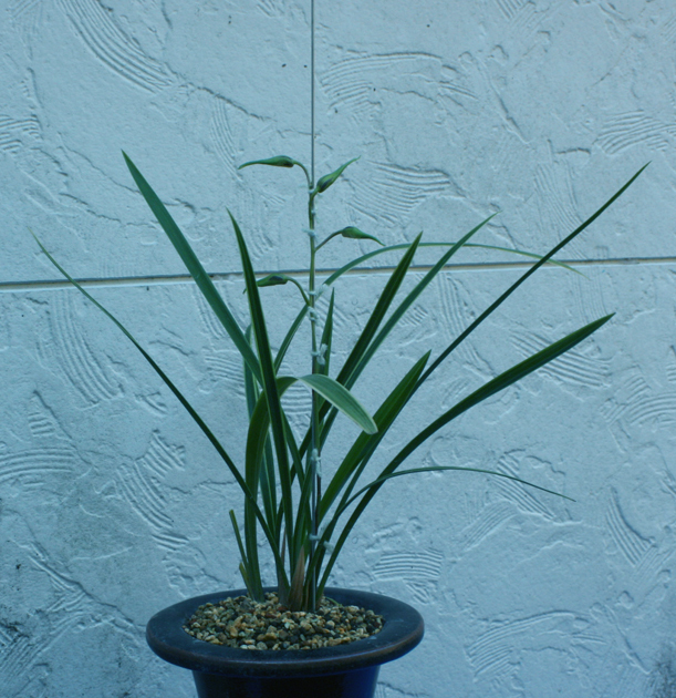 | 寒蘭の大きさ: | 5本立、2枚ー3-3-3ー4、葉丈35cm,根7本 | |||||||||
