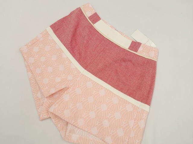 ショートパンツ S サーモンピンク&レッド×ホワイト 総柄 【メール便可】