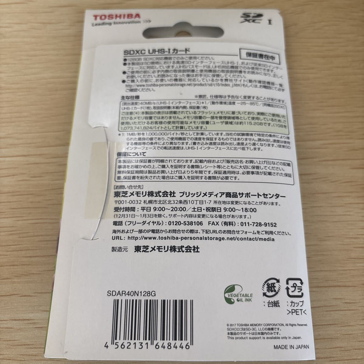 TOSHIBA 東芝 Class10 SDXC UHS-I カード 128GB 新品未開封