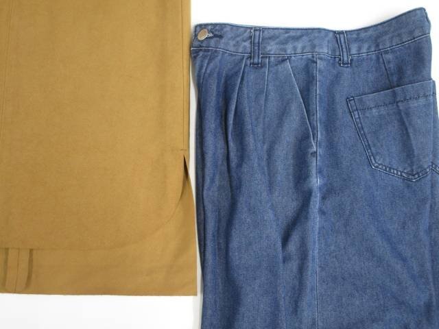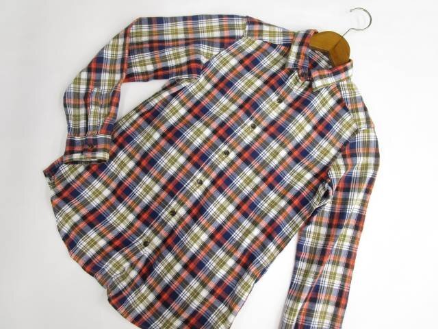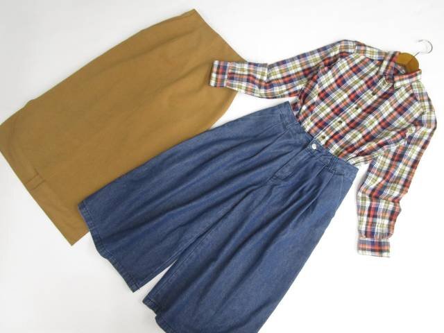 洗える長袖ネルシャツ+デニムキュロットスカート+ロングストレートスカート コーディネート上下3点セット S相当 ネイビー×オリーブ×オレンジ系×ホワイト チェック/ブルー系/ブラウン系 カジュアル 20代・30代・40代・50代