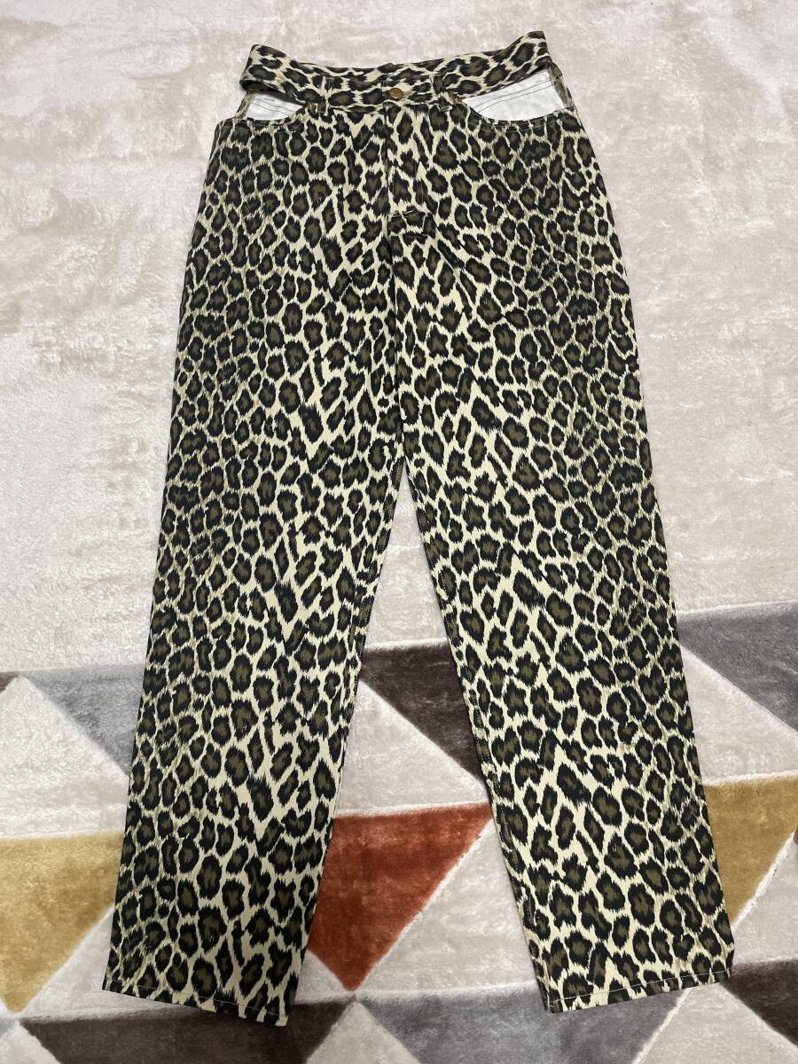 80年代頃と思いますブティック品の未着(長期保存品)です。画像の③④ウエストから両側に切り込みのあるデザインです。平置きでの約寸法も測ってみましたズボン丈w~104.5㎝H56.5㎝W38㎝股下80㎝です。画像の写真ご覧頂きどうぞ宜しくお願い致ます。サイズさえ合えば男女共用でも履いて頂けると思います。