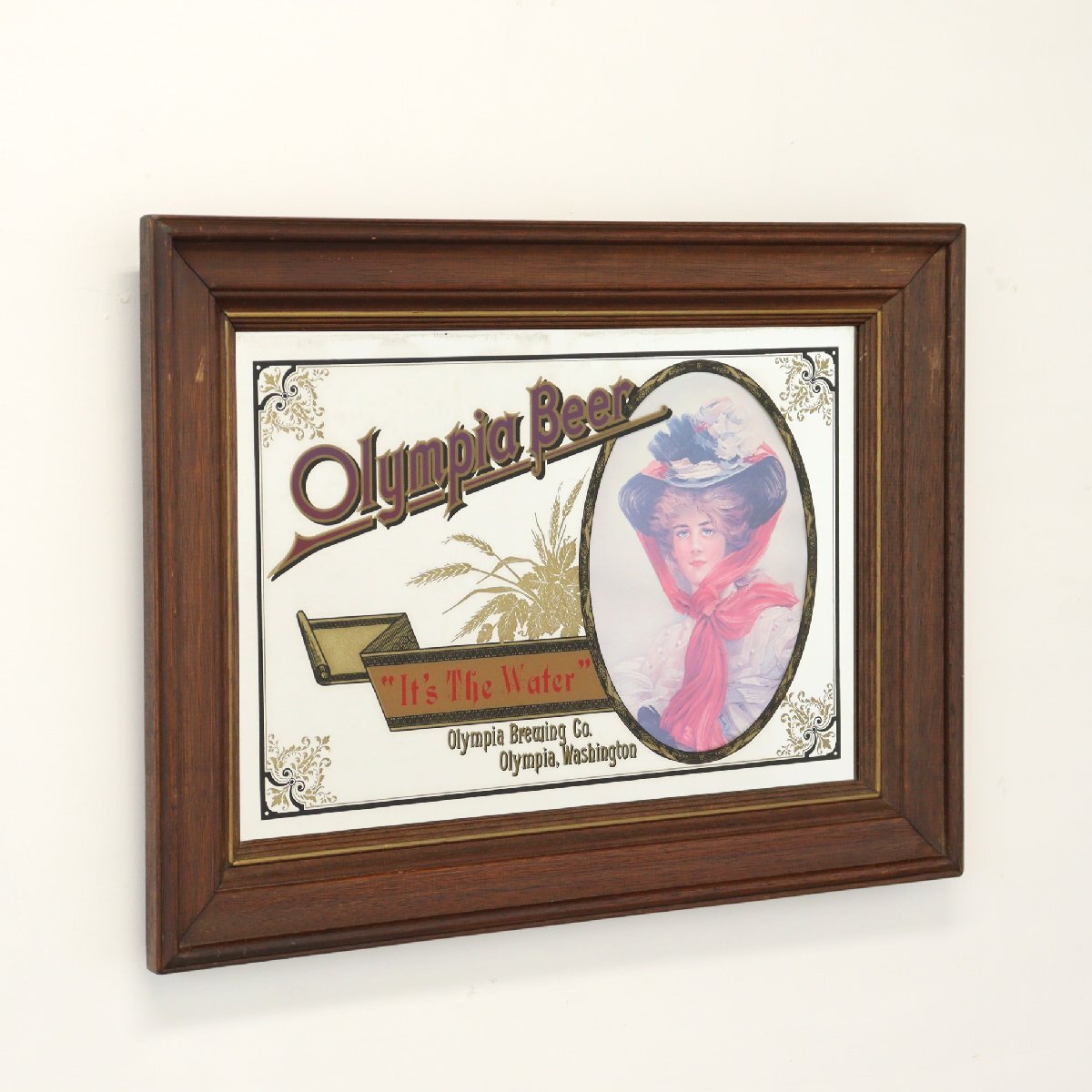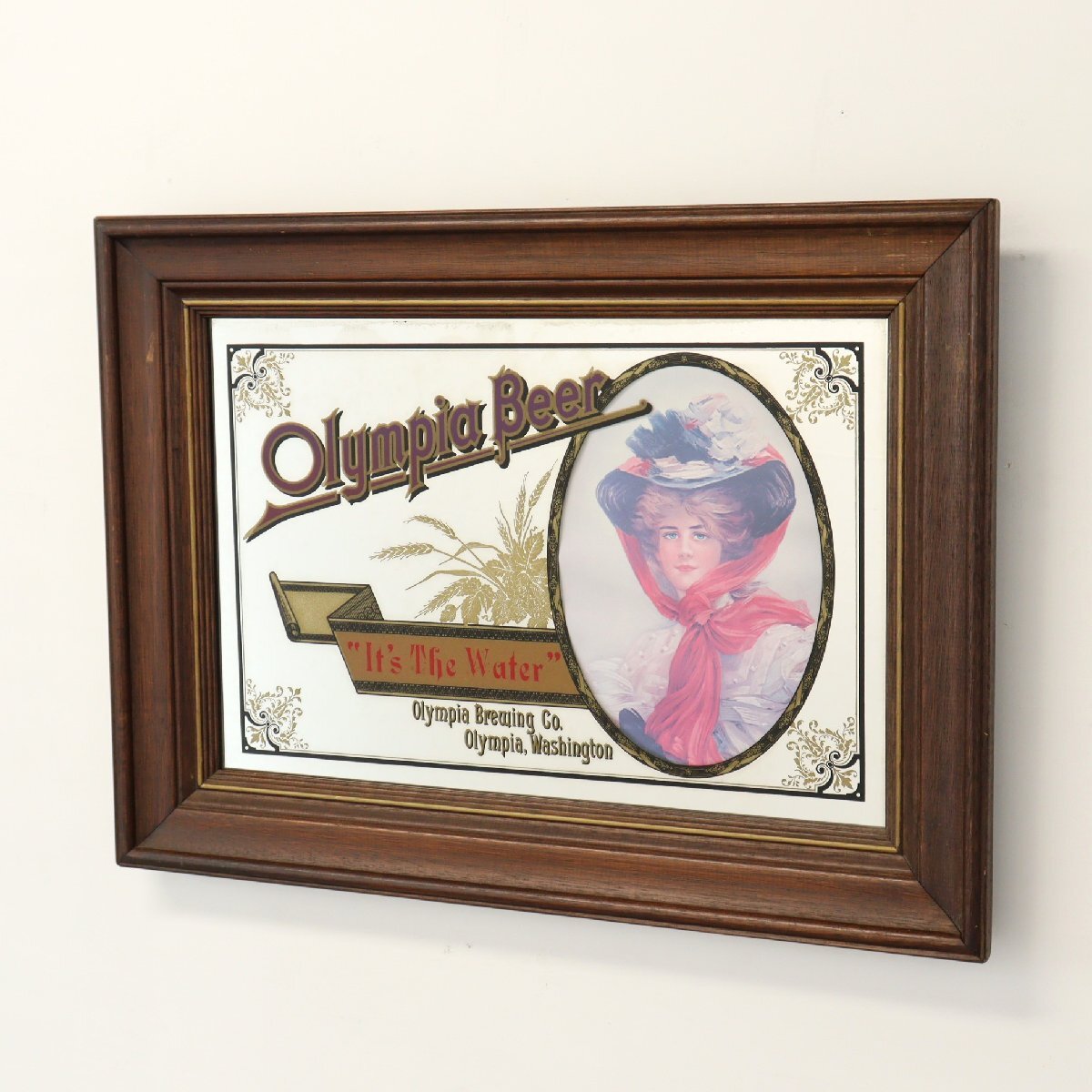 | 商品説明 explanation | アメリカ ワシントン州に1896年に設立され2003年までビールを製造しており、自噴井から採取した水で醸造していたことで有名な「Olympia Beer」のパブミラーです。 パブミラーとは酒場に飾る広告用の額装のことで、鏡やガラスがあります。 壁面のディスプレイ小物などにいかがでしょうか。 本体(鏡) フレーム(木) |