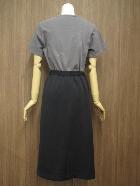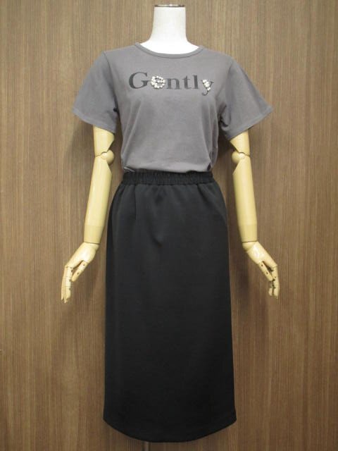 半袖Tシャツ+ひざ丈タイトスカート コーディネート上下2点セット M相当 グレー地 ブラック 英字/ブラック きれいめ・シンプル系 40代・50代~