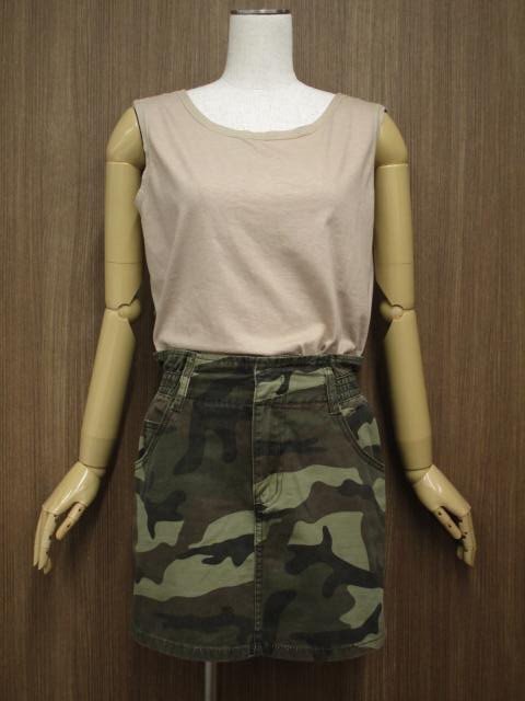 ノースリーブカットソー+ミニ台形スカート コーディネート上下2点セット M相当 ベージュ/グリーンカーキー グリーン系 迷彩柄 カジュアル系 10代・20代