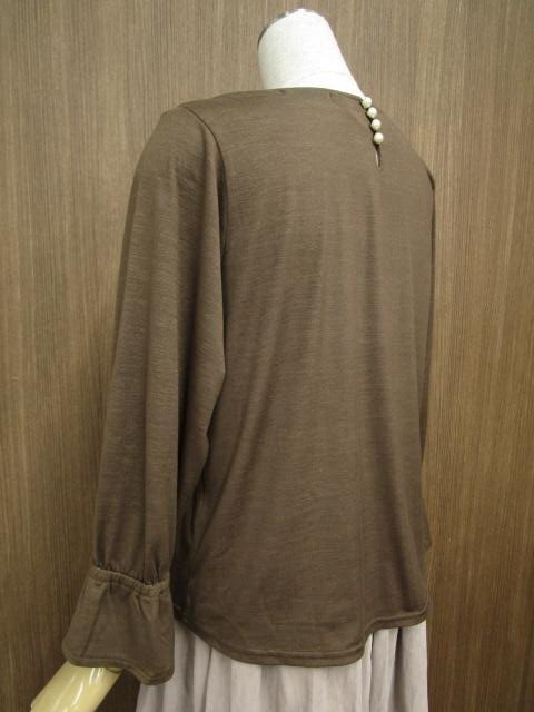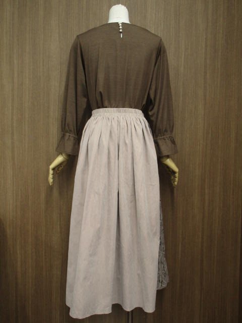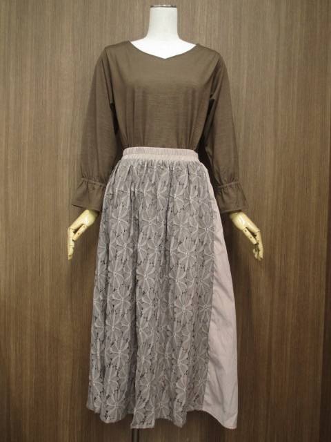 洗える長袖カットソー+ロング丈レースギャザースカート コーディネート上下2点セット M相当 ブラウン/ブラウン系 花柄 カジュアル系 30代・40代・50代~