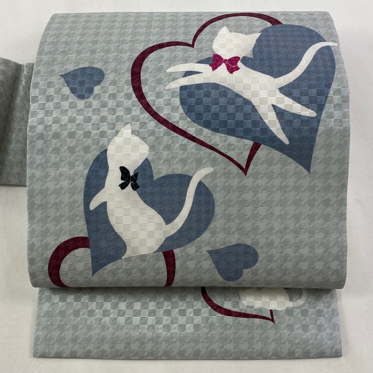 | 名古屋帯 美品 逸品 猫 ハート 薄緑 正絹 【中古】 |