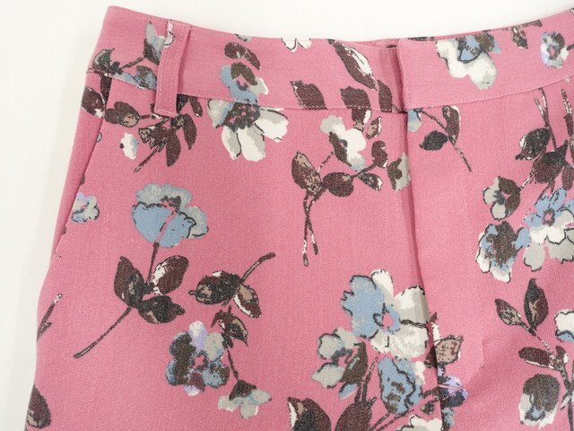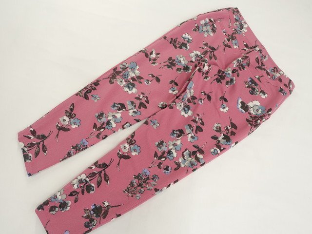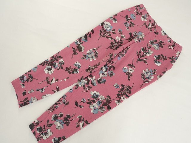 ノータックアンクルパンツ 1 ピンク地 アイボリー×ブルー 花柄 【メール便可】