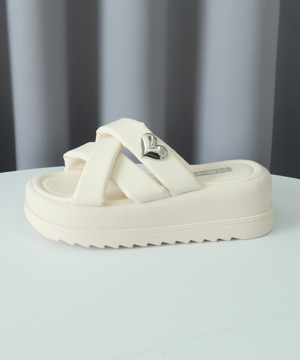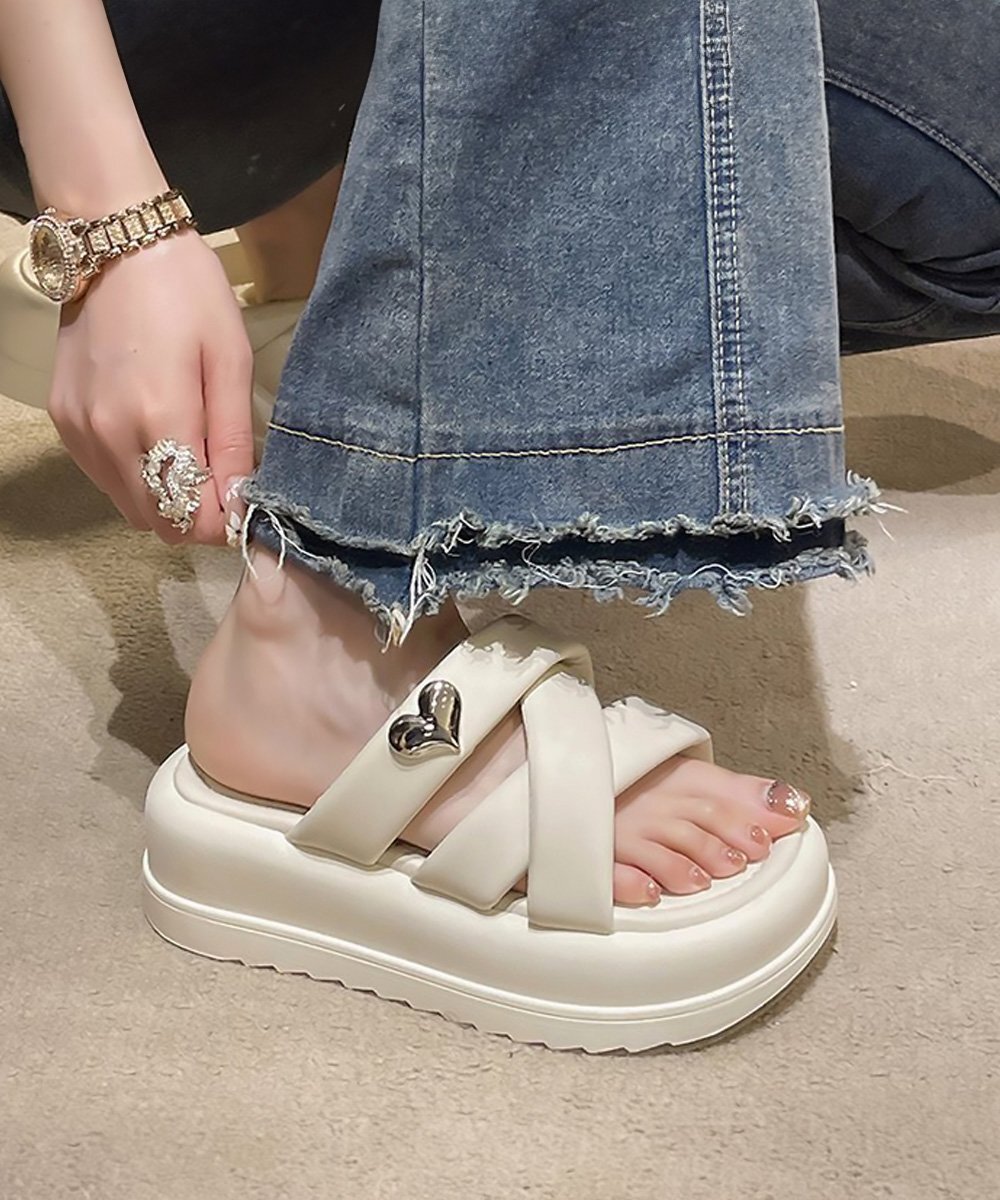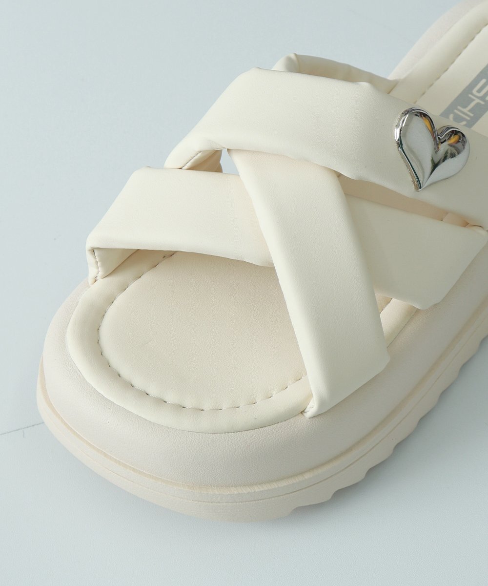 レディース ストラップサンダル フラットソール ハート飾りスリッパ おしゃれ 大人可愛い 海旅行 トラベル リゾートくつ