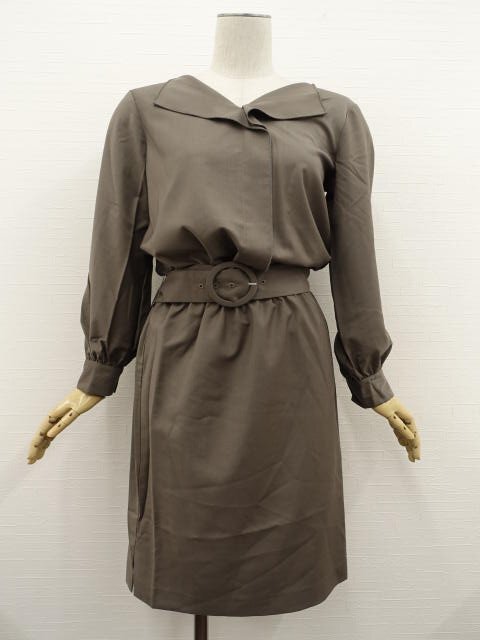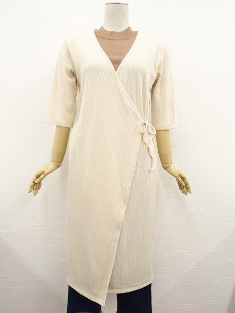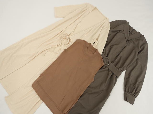 七分袖ロングニットカーディガン+ノースリーブニットカットソー+ひざ丈長袖ワンピース S相当 アイボリー/ブラウン/グレー系