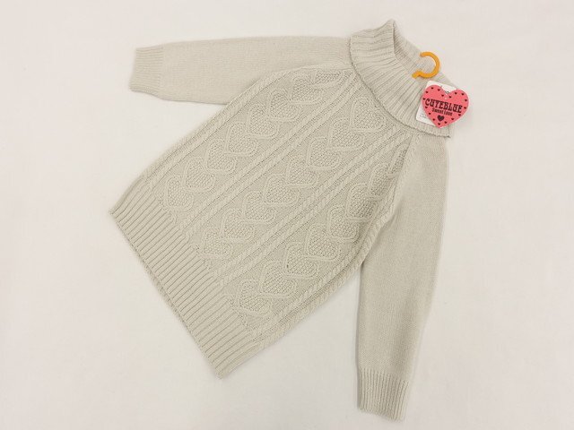ラグランスリーブ 長袖 タートルネック 洗えるニットカットソー 110 グレー