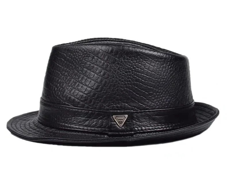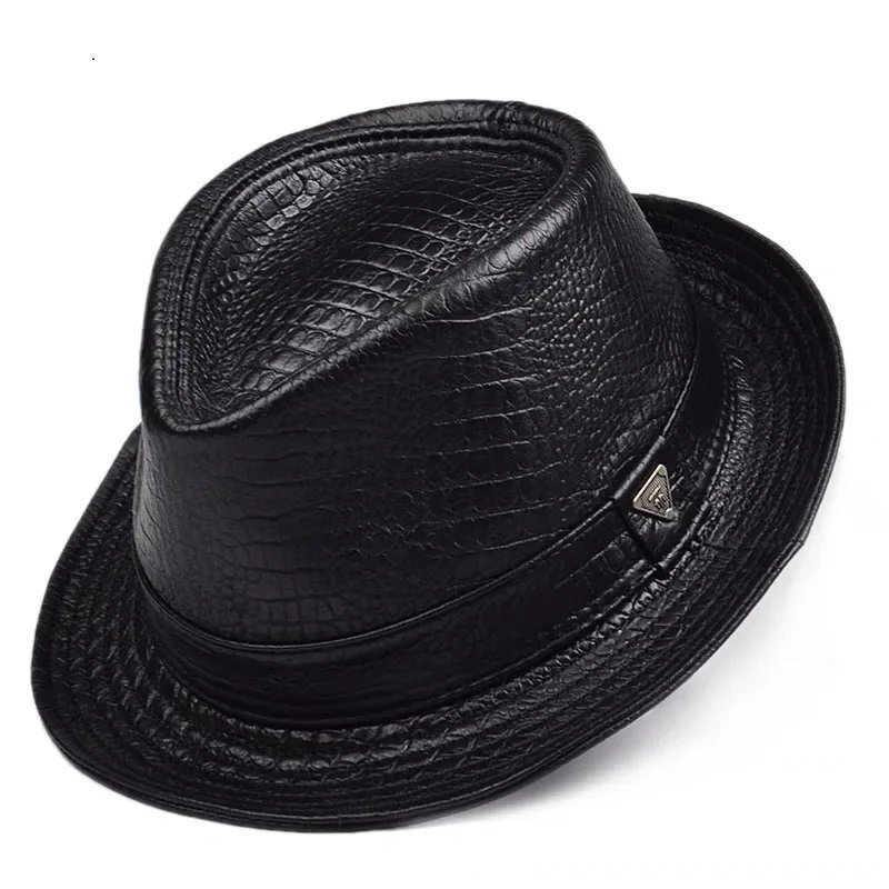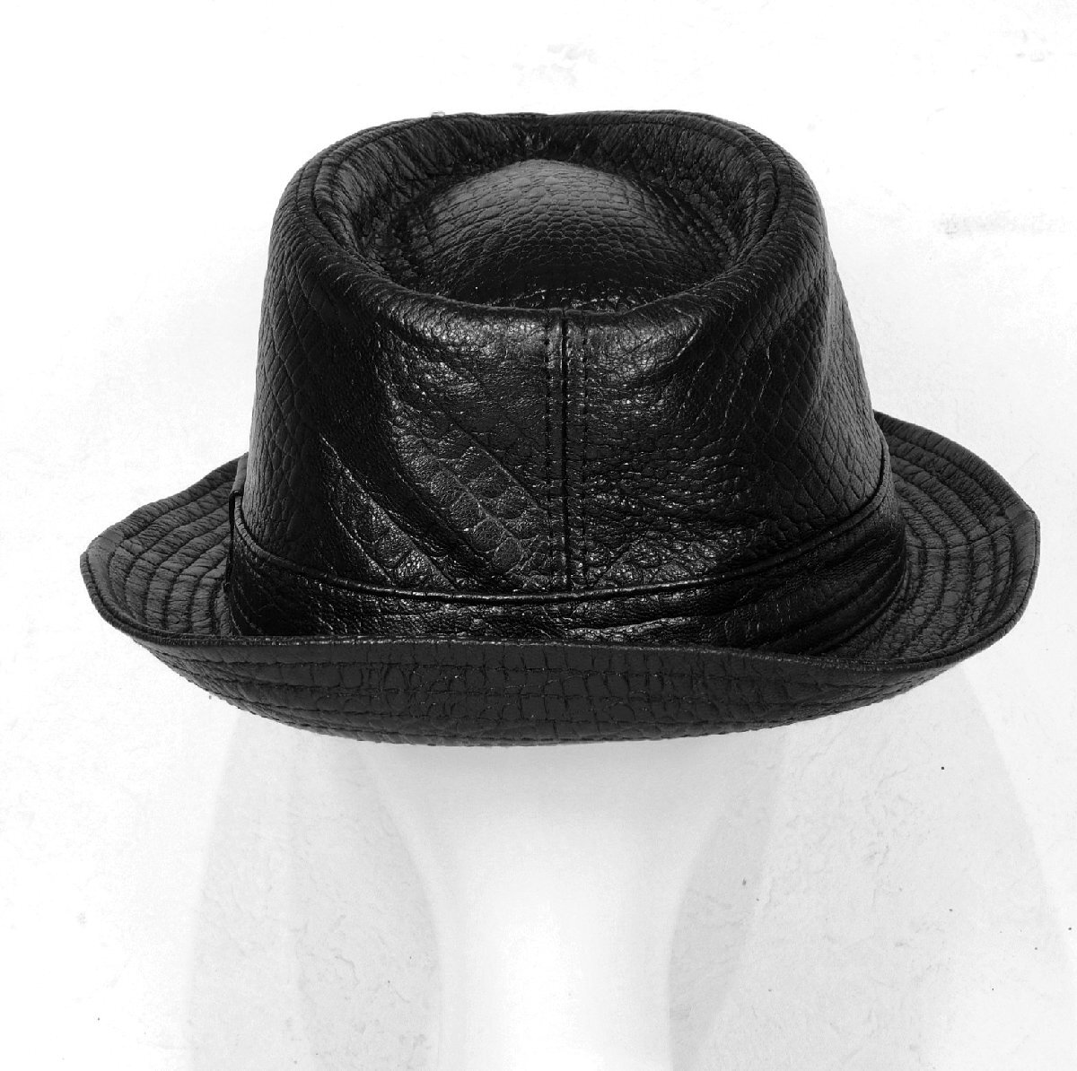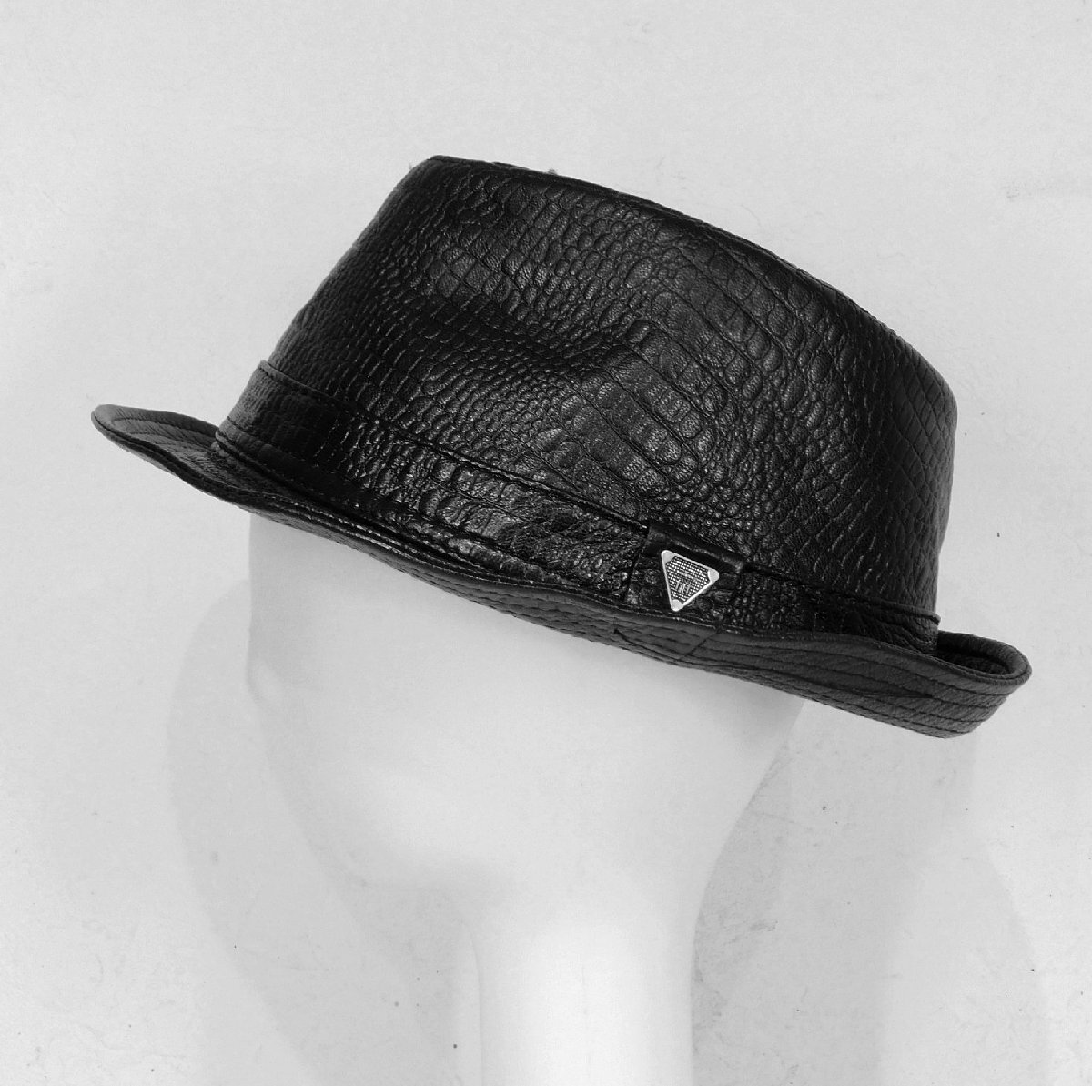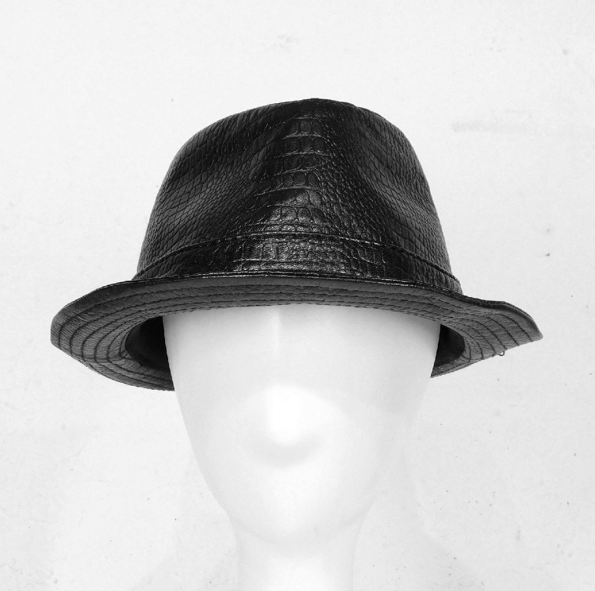 クロコダイル型押し レザーハット◆ 中折れハット◆ XLサイズ、57-58cm◆ ブラック◆ フェドーラ◆ 紳士ハット◆ ショートブリム◆ 帽子