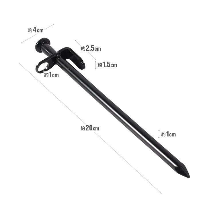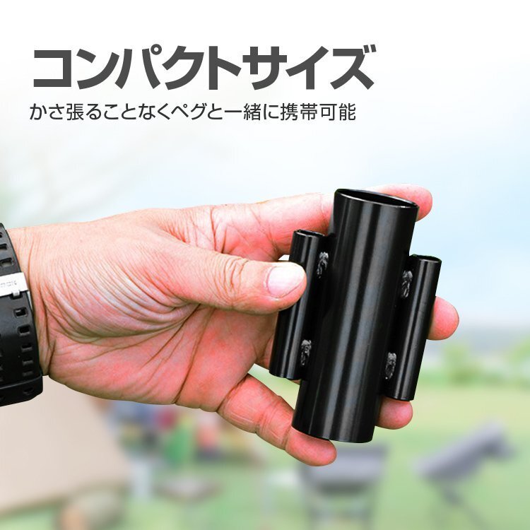 このセットで2本のポールを固定でき、テントポールやタープポールを地面にしっかり固定します。